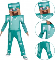 Ten licencjonowany kostium z popularnej gry Minecraft oferuje autentyczną turkusową diamentową zbroję z charakterystycznym pikselowym nadrukiem. Lekki i przyjemny w dotyku materiał gwarantuje wygodę przez cały dzień oraz swobodę ruchu podczas zabawy i tańca.