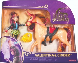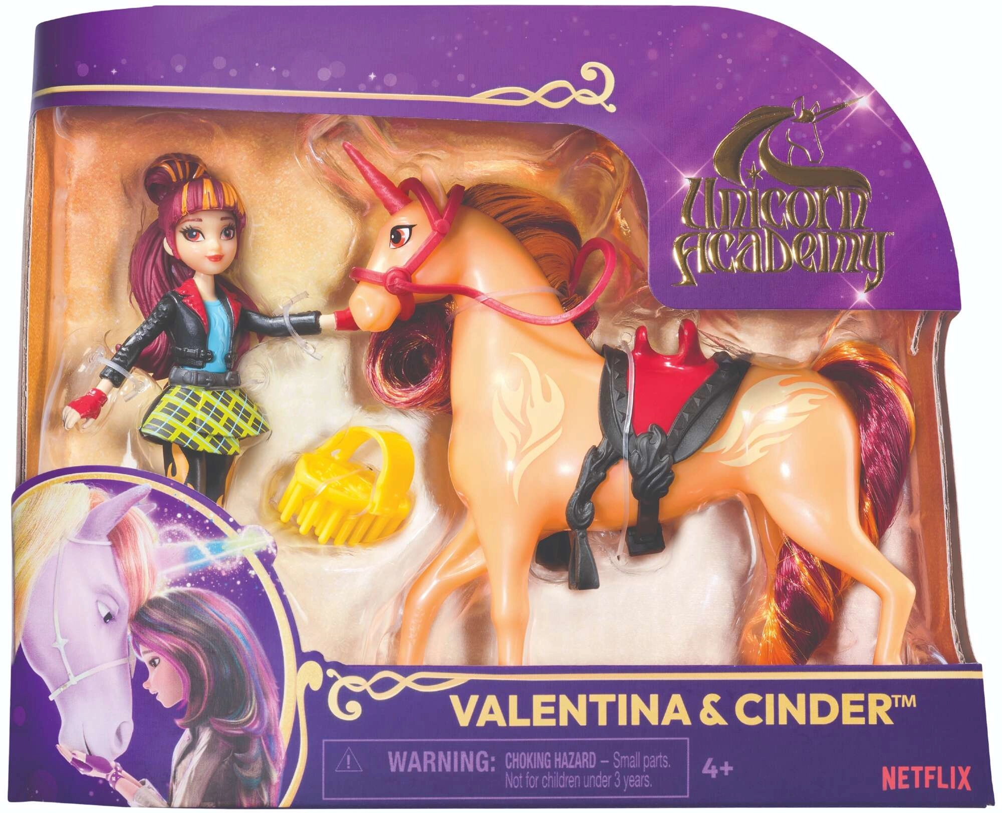 Zestaw Valentina & Cinder marki Spin Master inspirowany jest popularnym animowanym serialem UNICORN ACADEMY. Dzieci mogą ponownie przeżywać przygody nad jeziorem Sparkle Lake, wzmacniać przyjaźnie i odkrywać magiczne zdolności jednorożców. Lalka ma charakterystyczny serialowy strój i dzięki ruchomym kończynom łatwo przyjmuje różne pozy w siodle.
