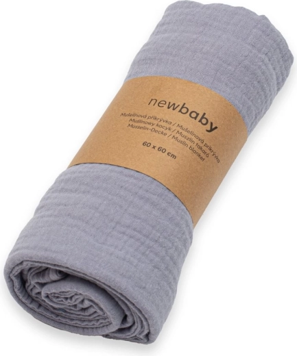 Lekki i delikatny muślinowy kocyk NEW BABY w eleganckim szarym kolorze jest idealny do codziennego użytku. Wykonany w 100% z organicznej bawełny, miękki i oddychający, odpowiedni do całorocznego stosowania i świetnie pasuje do innych muślinowych produktów tej samej marki.