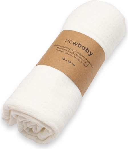 Lekki i miękki muślinowy kocyk z 100% organicznej bawełny do całorocznego użytku. Delikatny dla skóry dziecka, oddychający, przyjemny w dotyku i w eleganckim białym kolorze. Świetny jako prezent i do wyprawki, pasuje do innych produktów NEW BABY.