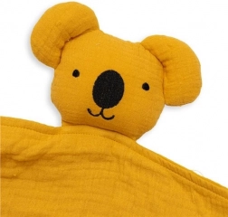 Uroczy muślinowy przytulaczek do zasypiania NEW BABY Koala w kolorze musztardowym daje niemowlęciu/lalce poczucie bezpieczeństwa i komfortu od pierwszych dni. Wykonany w 100% z bawełny organicznej, miękki w dotyku i pomaga łatwiej zasypiać. Minimalistyczny design i stonowane kolory świetnie komponują się z innymi muślinowymi dodatkami.