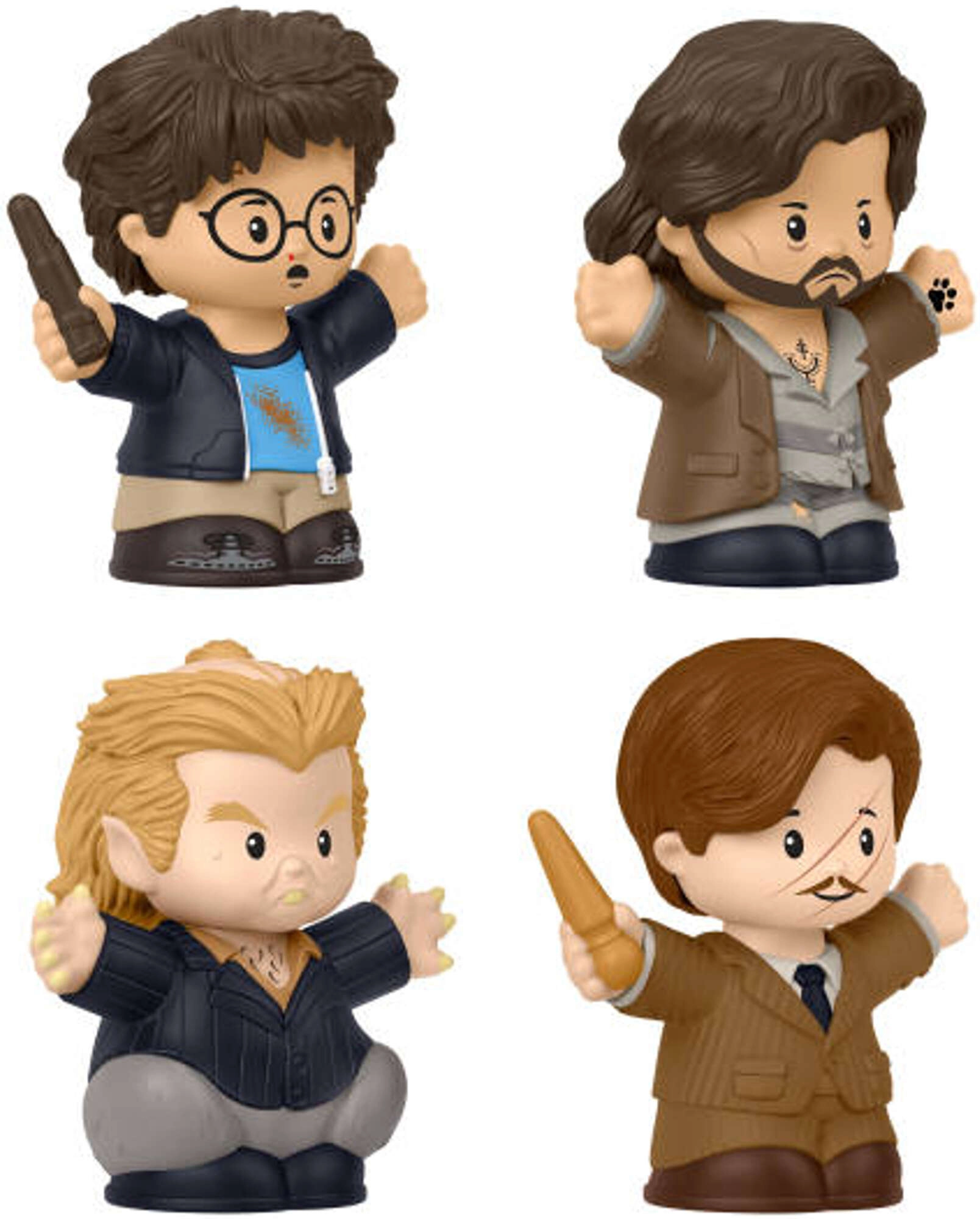 HARRY POTTER, Remus Lupin, Syriusz Black i Peter Pettigrew w jednolitym chibi stylu z różdżkami – gotowe do zabawy i ekspozycji.