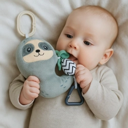 Uroczy leniwiec NEW BABY z kolekcji Sloth to idealny towarzysz w podróży i w domu. Oferuje wibracje dla ukojenia, bezpieczny gryzak podczas ząbkowania oraz zabawną grzechotkę wspierającą rozwój zmysłów i motoryki.