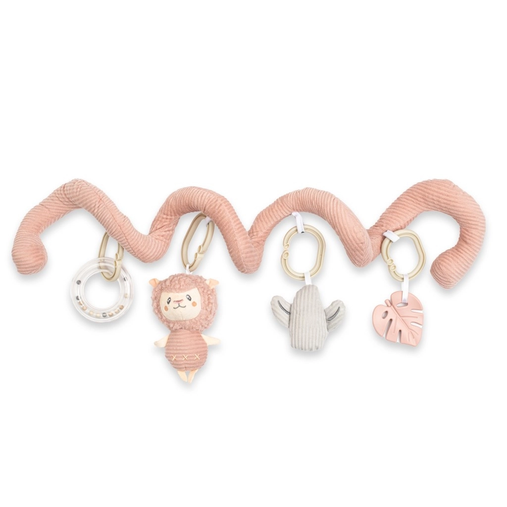 Urocza spiralna zabawka z motywem lamy od marki NEW BABY zapewni maluszkowi interaktywną zabawę w domu i w podróży. Dzięki sprytnemu spiralnemu kształtowi łatwo przymocujesz ją do łóżeczka, wózka lub fotelika samochodowego. Zawiera piszczałkę, grzechotkę i gryzak do stymulacji zmysłów oraz ukojenia podczas ząbkowania. Wykonana z wysokiej jakości i bezpiecznych materiałów.