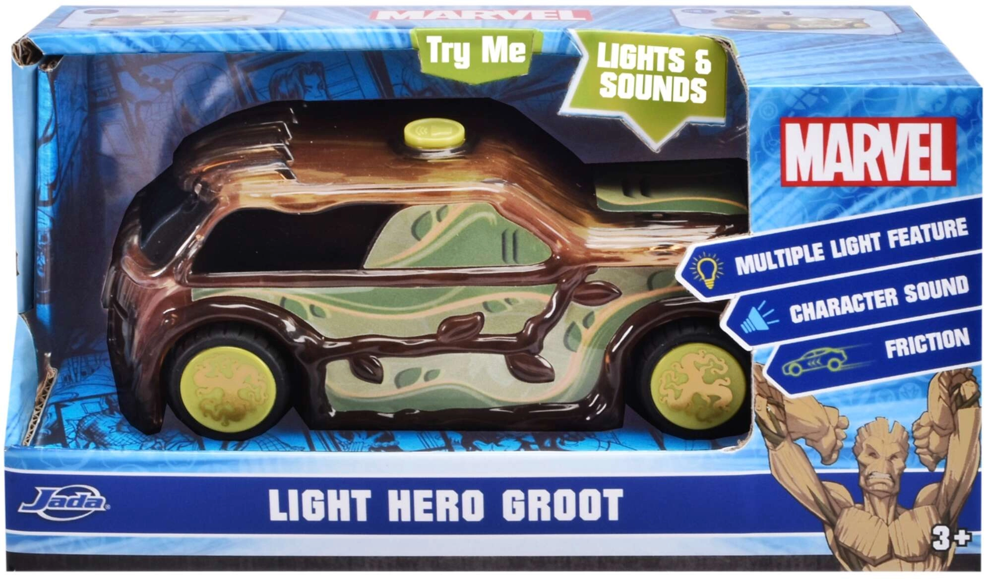 Odkryj dynamiczny samochodzik z motywem GROOT z MARVEL, który łączy interaktywne efekty świetlne i dźwiękowe z oryginalnym, naturalnym designem inspirowanym drewnem, liśćmi i gałązkami. Dzieci łatwo aktywują efekty, naciskając żółty przycisk na dachu, i mogą wyruszyć na przygodowe misje Avengers.