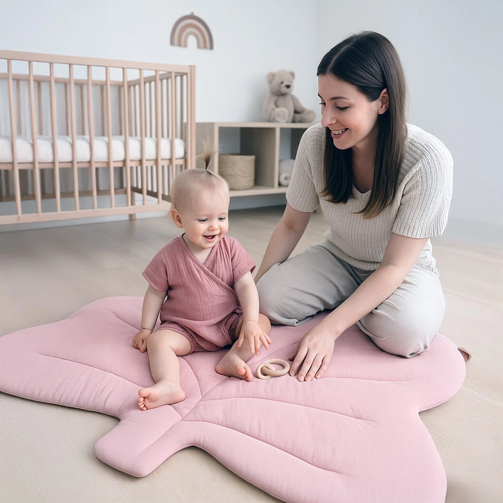 Ta premium mata do zabawy z muślinu jest idealna do codziennej zabawy i odpoczynku niemowlęcia. Dzięki wymiarom 107 × 100 cm zapewnia komfortową przestrzeń, a kształt liścia klonu stanie się stylowym dodatkiem do pokoju dziecięcego.