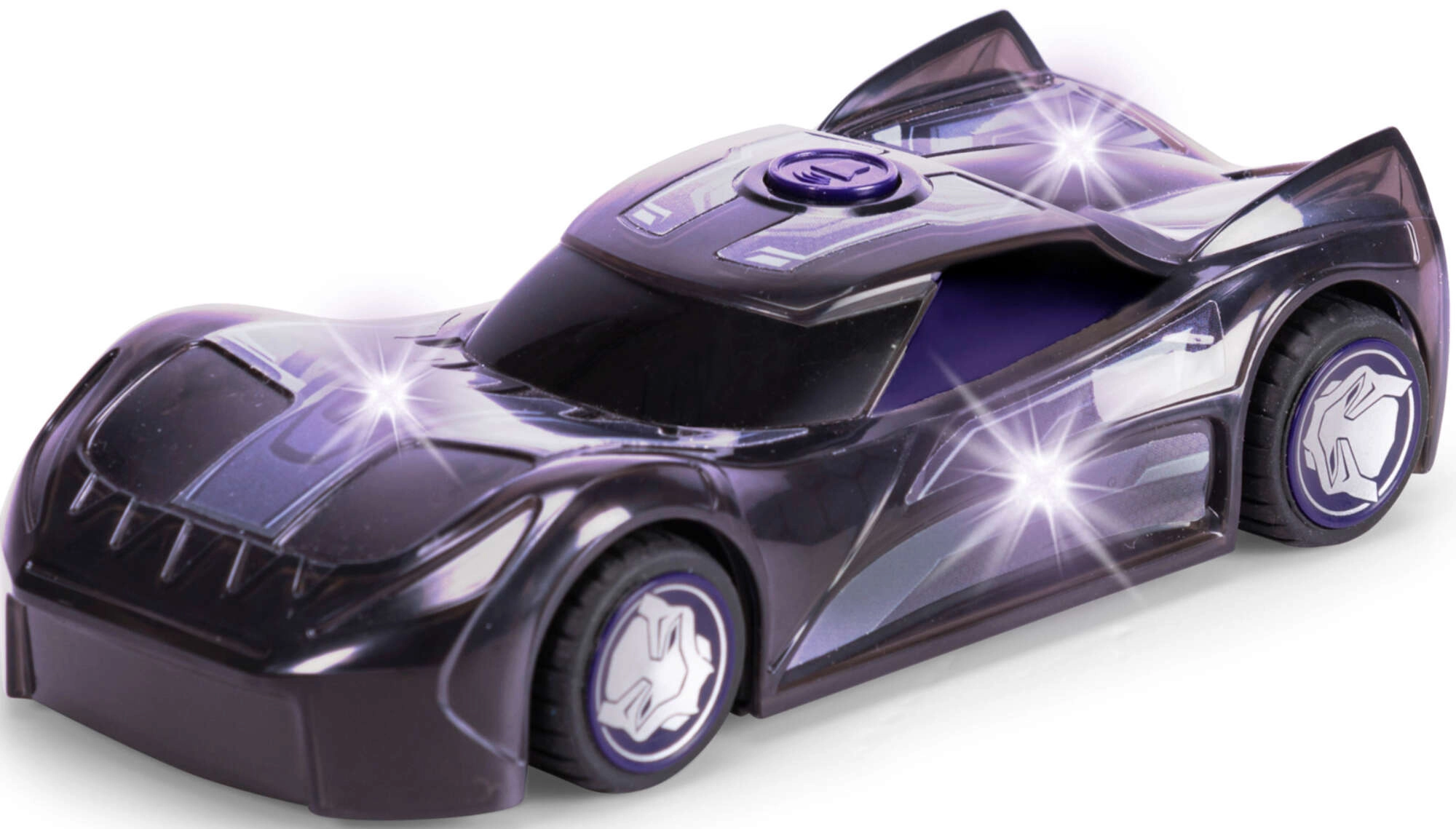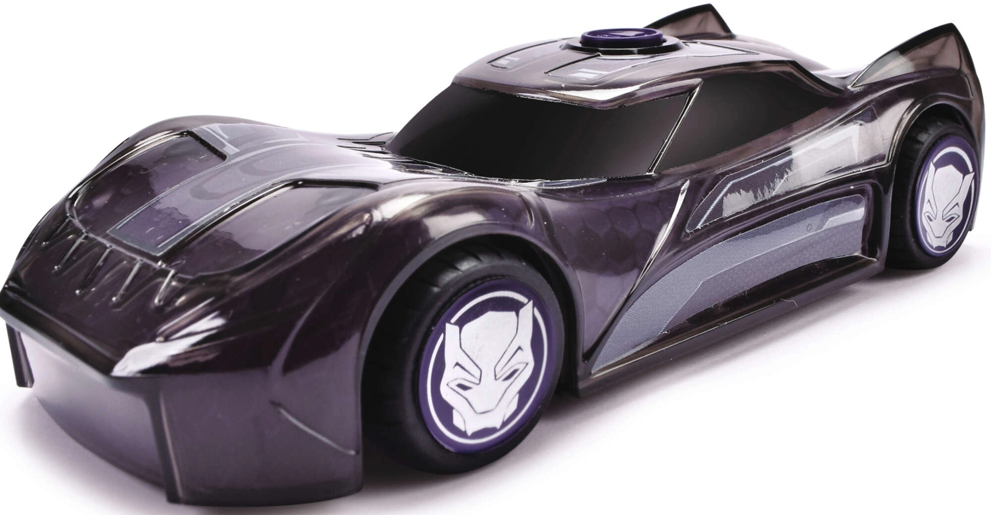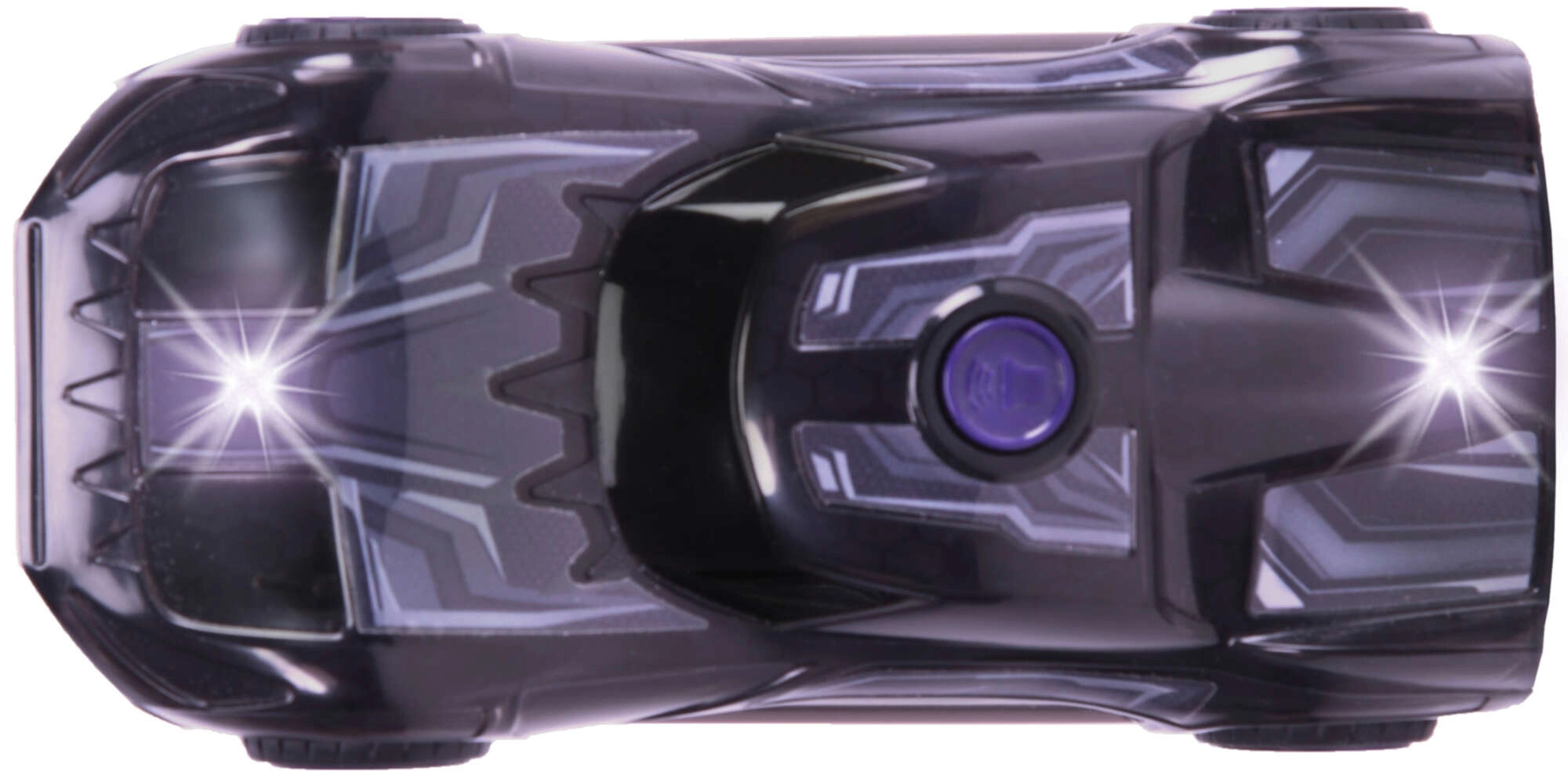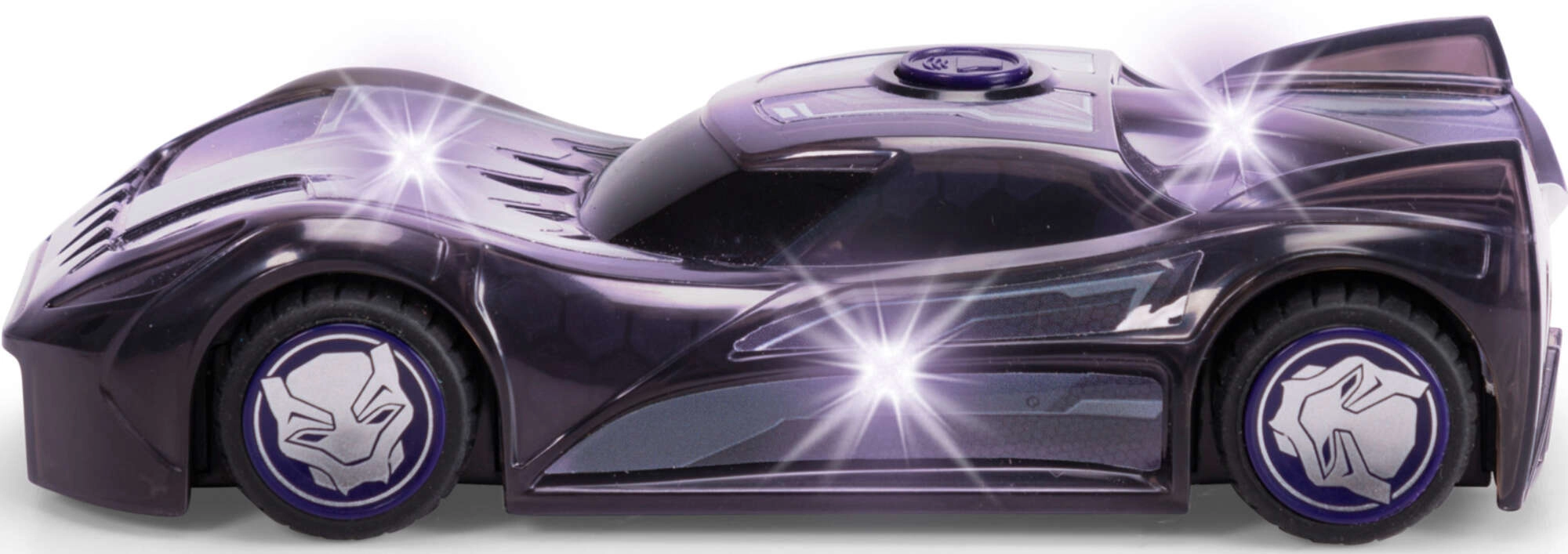 Wyrusz na pełną akcji przejażdżkę z samochodzikiem MARVEL Black Panther. Karoseria z motywem maski i futurystycznymi liniami doskonale oddaje styl ulubionego bohatera. Po naciśnięciu fioletowego przycisku uruchamia się poświata świateł na całej karoserii oraz autentyczne dźwięki pojazdu i postaci, by wzmocnić wrażenia z zabawy.