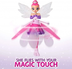 Odkryj magię latającej wróżki Hatchimals Pixies Crystal Flyers, która unosi się nad dłońmi i dzięki sprytnym czujnikom reaguje na wysokość Twoich rąk. Wystarczy delikatnie ją naprowadzać, a wróżka elegancko porusza się po pomieszczeniu. Lekka konstrukcja, iskrzące kolory i błyszczące skrzydła sprawiają, że ta zabawka to zachwycające widowisko i świetna rozrywka.