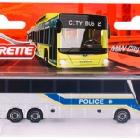 Odkryj realistyczny model miejskiego autobusu w policyjnym wzornictwie, który wyróżnia się precyzyjnym wykonaniem i trwałą konstrukcją. Szara karoseria z niebieskim pasem, metal i dopracowane detale sprawiają, że ta zabawka to atrakcyjny dodatek do dziecięcej kolekcji oraz witryny zapalonych kolekcjonerów.