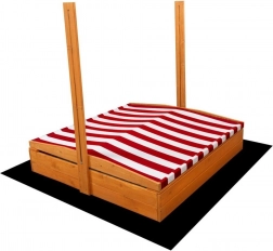 Ciesz się beztroską zabawą w ogrodzie. Ten daszek do piaskownicy 120 × 120 cm łączy trwałą drewnianą konstrukcję z wysokiej jakości płótnem w czerwono-białe pasy. Zapewnia cień i ochronę przed lekkim deszczem, a także można go opuścić aż do krawędzi, by piaskownica pozostała czysta i chroniona.