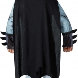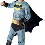 Nadruk mięśni, emblemat BAT na piersi oraz żółty „utility belt” nadają kostiumowi realistyczny wygląd, który dzieci uwielbiają.