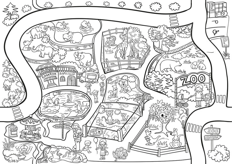 Ta wielkoformatowa kolorowanka Zoo jest idealna dla dzieci i dorosłych, którzy kochają kreatywne kolorowanie. Dzięki wymiarom 64 × 90 cm oferuje mnóstwo miejsca na fantazję oraz szczegółowe kolorowanie zwierząt i środowiska zoo.