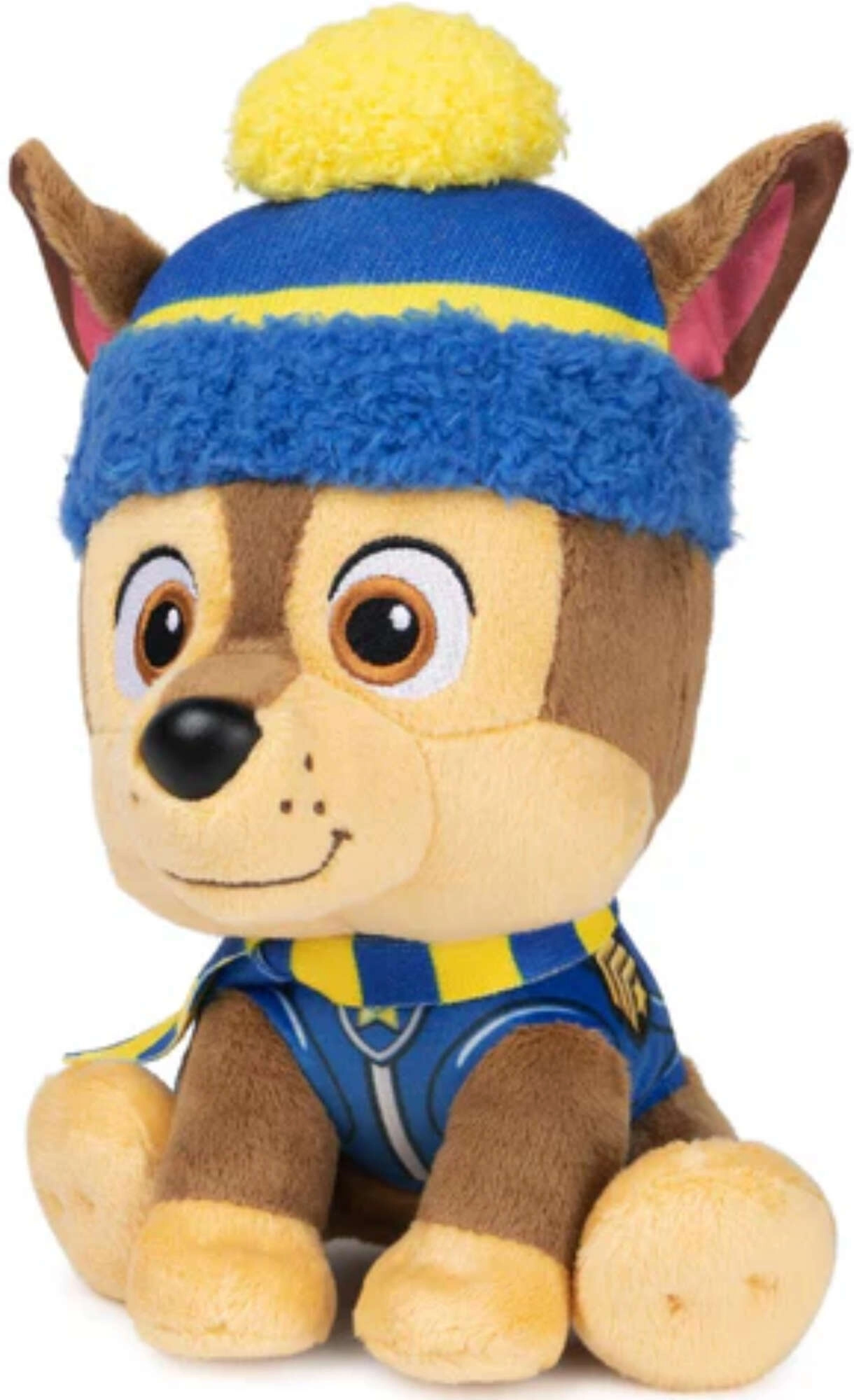 CHASE ma na sobie swój charakterystyczny niebieski policyjny strój, uzupełniony o zimową czapkę z pomponem i szalik w barwach drużyny. Dzięki kompaktowemu rozmiarowi dzieci łatwo zabiorą go do przedszkola, na wycieczkę i do łóżka. Idealny towarzysz do zabaw w odgrywanie ról, rozwijania wyobraźni i codziennej radości.