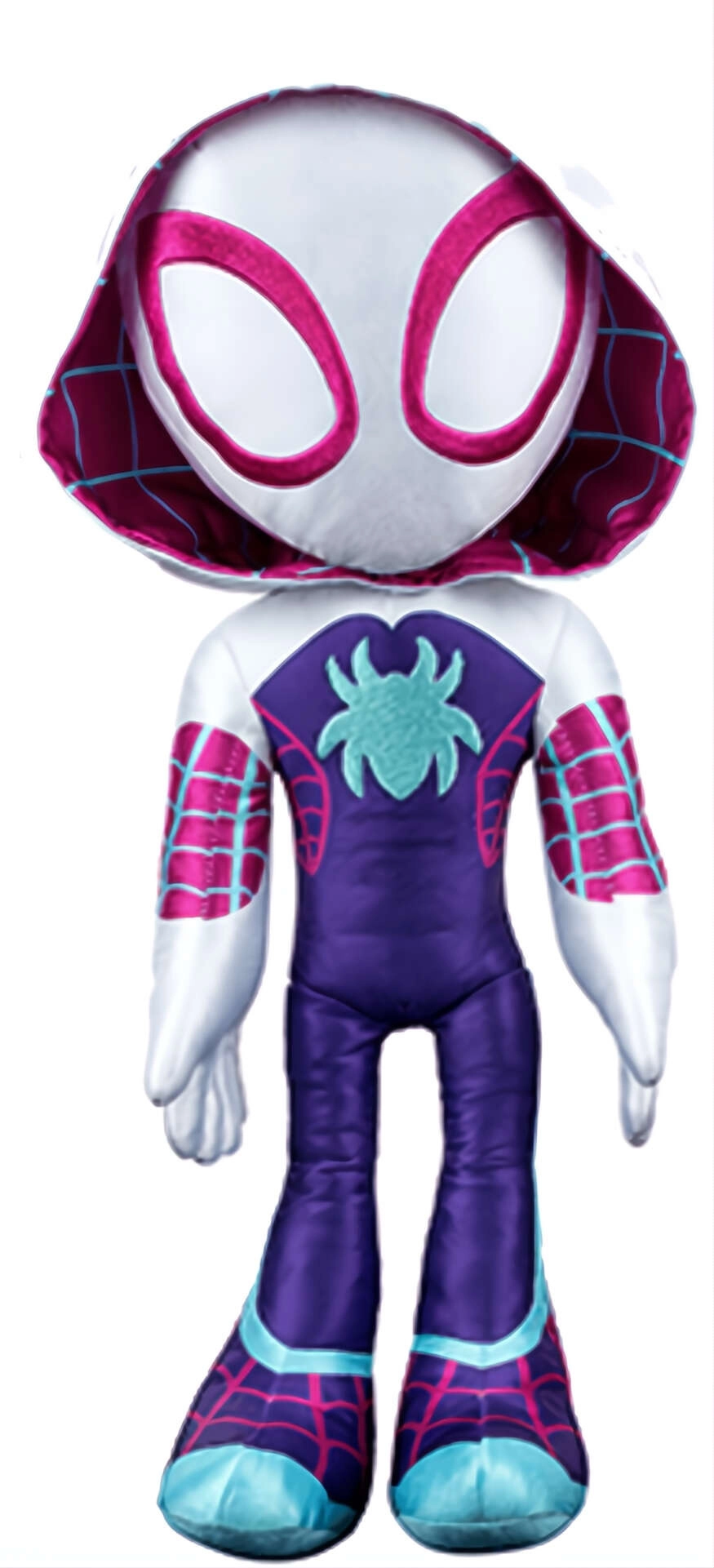 Ulubiona bohaterka Ghost-Spider (Gwen Stacy) pojawia się w formie miękkiego pluszaka z serii Spidey i jego niesamowici przyjaciele. Dzięki wysokiej jakości wykonania z haftowanymi detalami twarzy oraz charakterystycznemu białemu kostiumowi z różowo-niebieskimi akcentami jest łatwo rozpoznawalna i gotowa na codzienną zabawę oraz przytulanie.