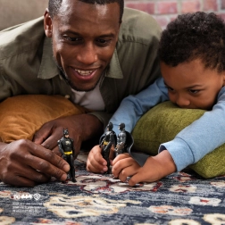 W opakowaniu znajdziesz trzy różne warianty Batmana, które razem tworzą imponującą kolekcję na 85. rocznicę Mrocznego Rycerza.