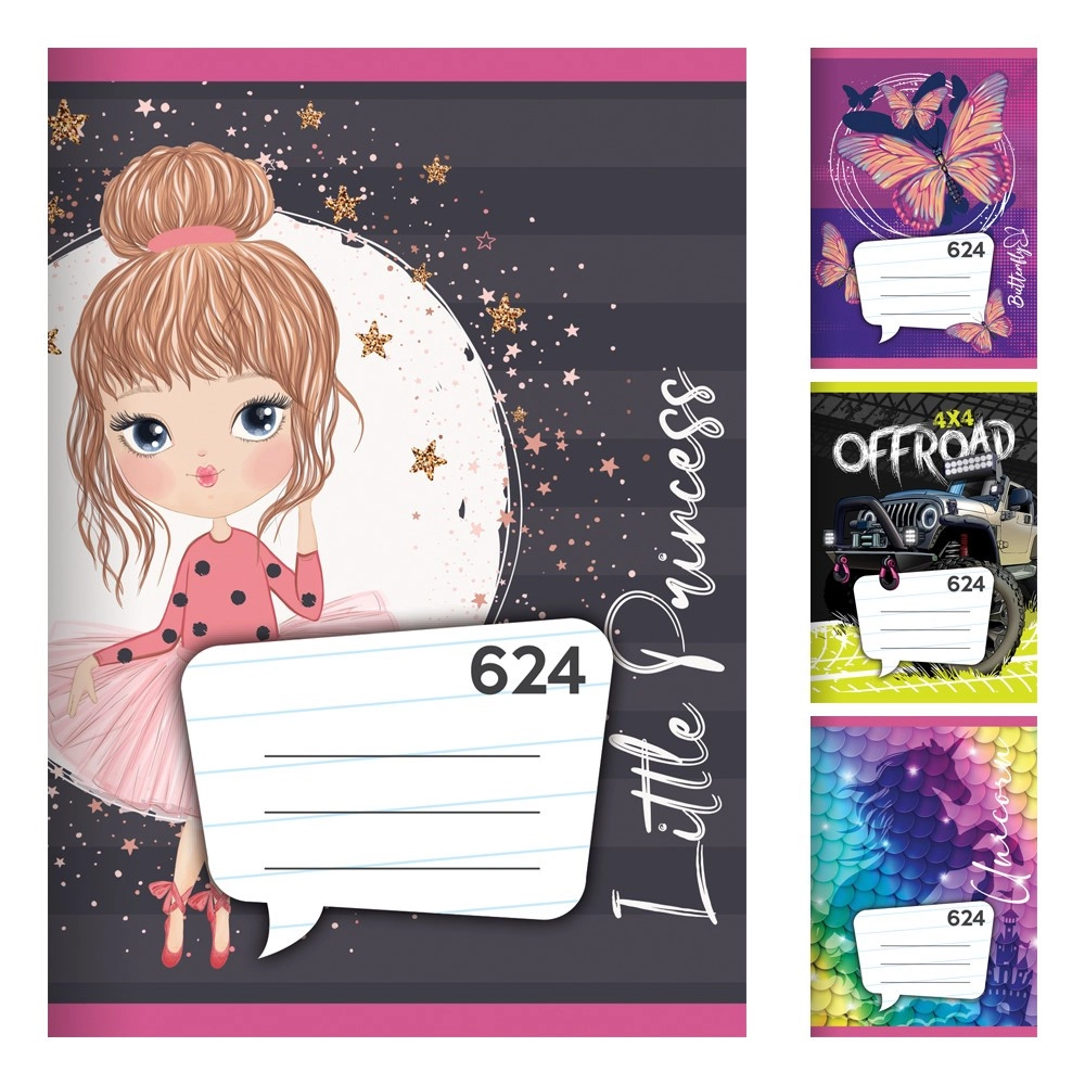 Zeszyt jest dostarczany w opakowaniu po 20 sztuk (cena podana za 1 szt.) i jest dostępny nawet w 20 wariantach motywów, więc łatwo wybierzesz design, który Ci odpowiada. Wyraźna liniatura 8 mm pomaga utrzymać pismo równe i czytelne.