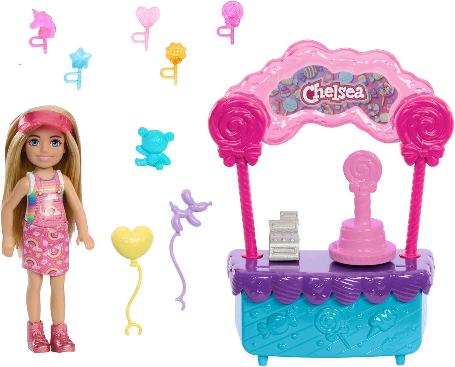 Odkryj słodki świat z lalką CHELSEA z serii BARBIE – kolorowe stoisko z lizakami zapewnia mnóstwo kreatywnej zabawy w odgrywanie ról. W zestawie lalka o wysokości ok. 15 cm w różowej sukience z tęczą, stoisko z kasą, obrotowa patera na tort, lizakowe dekoracje oraz drobne akcesoria do sprzedaży i serwowania słodkości. Idealny prezent dla dzieci od 3 lat.
