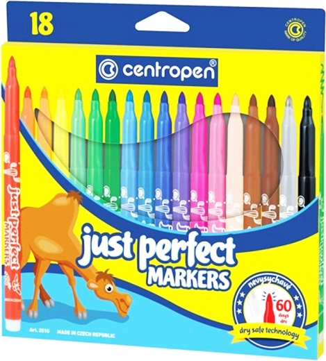 Odkryj radość tworzenia z flamastrami CENTROPEN Just Perfect w dużym zestawie. Oferują niewysychające i spieralne tusze, wygodne pisanie oraz 18 wyrazistych kolorów do rysowania i kolorowania.