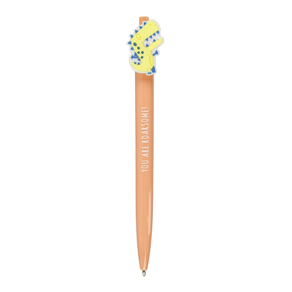 Zabawny topper z dinozaurem zamienia zwykłe pisanie w frajdę i jest świetnym dodatkiem do szkolnego piórnika.