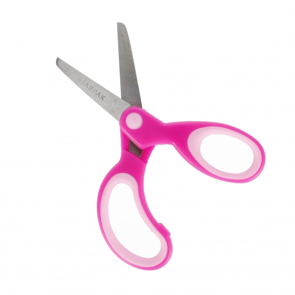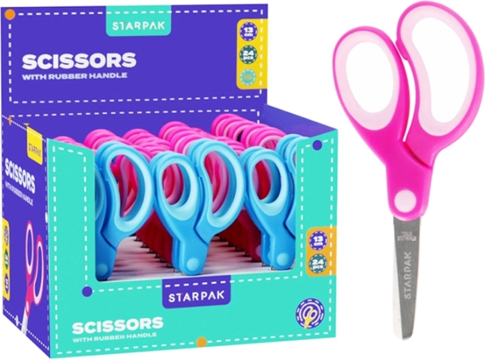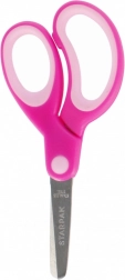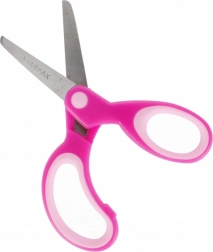 Praktyczne szkolne nożyczki o długości 13 cm, idealne dla małych dziecięcych dłoni. Dzięki ergonomicznym uchwytom i zaokrąglonym końcówkom są bezpieczne dla dzieci od 3 lat, doskonałe do cięcia papieru i prac plastycznych. Dostępne w wielu wersjach kolorystycznych, opakowanie po 24 sztuki, cena za 1 szt.