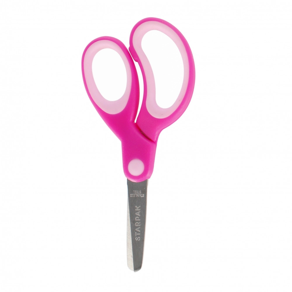 Końcówki ostrzy są zaokrąglone, aby zminimalizować ryzyko urazu podczas zajęć szkolnych i domowych prac plastycznych.