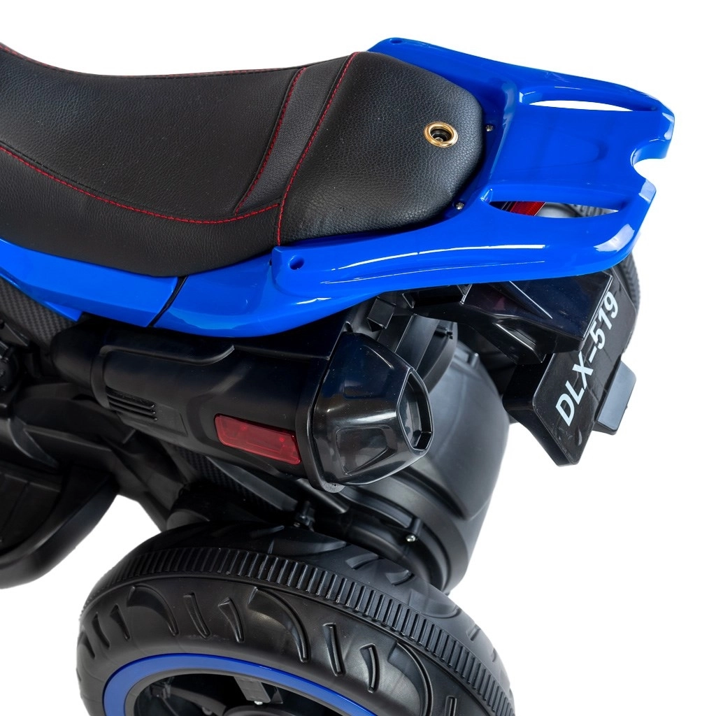 Stylowy dziecięcy motocykl elektryczny Baby Mix Rare w niebieskim kolorze zachwyci małych kierowców stabilną, trójkołową konstrukcją, wydajnymi dwoma silnikami oraz akumulatorem 6V 7Ah. Oferuje wygodne skórzane siedzisko, proste sterowanie jednym przyciskiem oraz jazdę do przodu i do tyłu. Za zabawę i naukę odpowiada muzyka, piosenki dla dzieci i funkcje edukacyjne z wejściem na kartę SD, a reflektory LED poprawiają widoczność i styl.