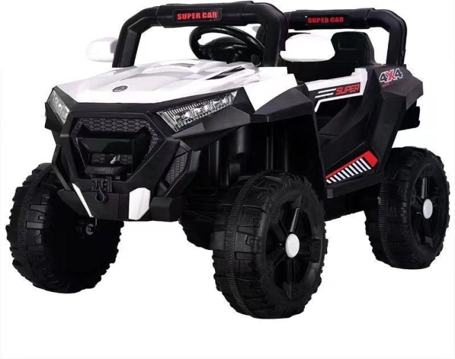 Dziecięcy elektryczny samochód Buggy BABY MIX Space w białym kolorze oferuje mocne silniki 2×380, napęd na lekki teren, przednie światła LED oraz funkcje dźwiękowe i edukacyjne dla zabawnej i bezpiecznej jazdy. Dzięki solidnej konstrukcji i wysokiej jakości materiałom idealnie nadaje się do zabawy na zewnątrz.