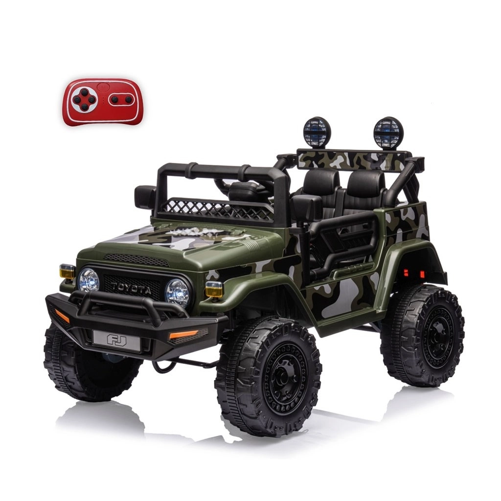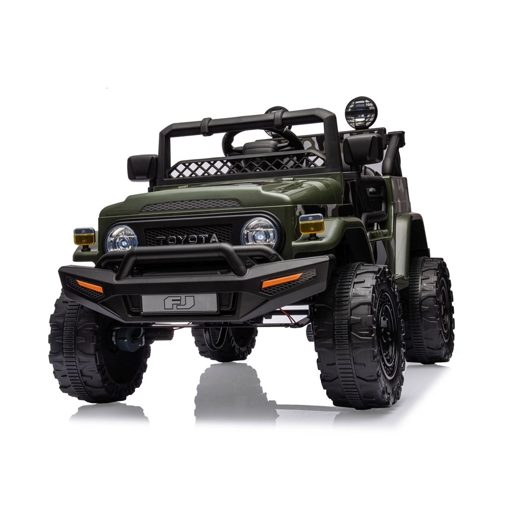 Odkryj terenowe przygody z elektrycznym samochodzikiem Toyota FJ Cruiser Army. Solidna konstrukcja z wytrzymałego plastiku, duże koła i realistyczne detale gwarantują świetną zabawę i wspierają rozwój motoryki. Dzięki płynnemu startowi, dwóm biegom do przodu i wstecznemu biegowi prowadzenie jest komfortowe i bezpieczne.