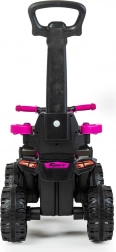 Wysoka tylna rączka pozwala dorosłemu łatwo pchać i kierować jeździkiem, dzięki czemu dziecko jedzie bezpiecznie i komfortowo.
