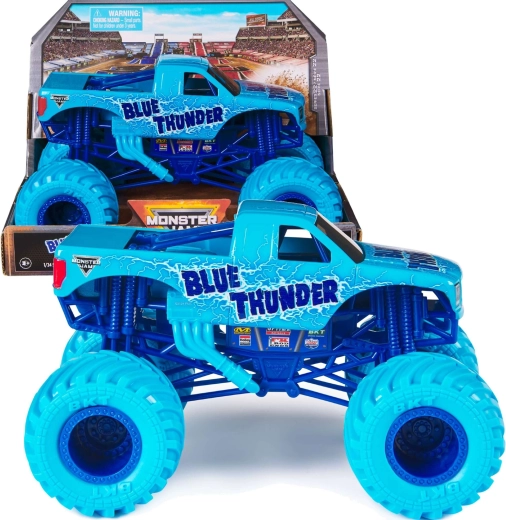 Wytrzymałe metalowe nadwozie z charakterystycznymi błyskawicami Blue Thunder i oficjalną licencją MONSTER JAM zapewnia wierny wygląd oraz trwałość podczas intensywnej zabawy.