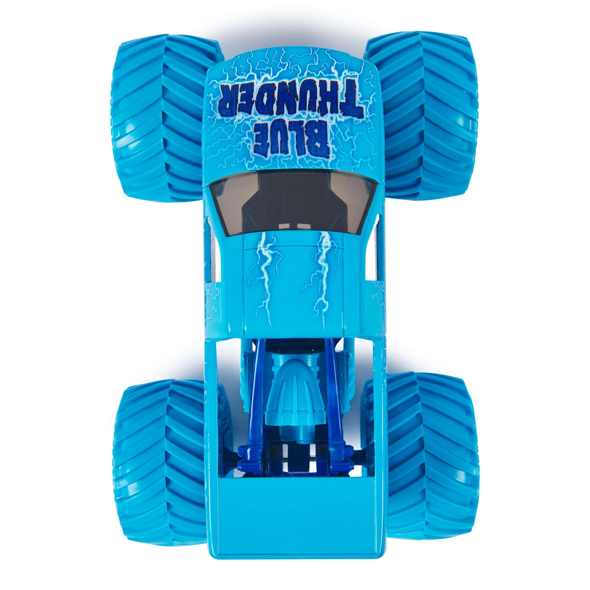Legendarny Blue Thunder przenosi do dziecięcego pokoju atmosferę prawdziwych zawodów MONSTER JAM. Metalowe wykonanie nadwozia, wyraziste grafiki z błyskawicami i wysoki zawieszenie nadają modelowi realistyczny wygląd oraz wytrzymałość podczas skoków i kaskaderskich popisów.