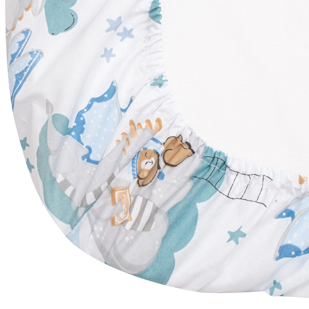 Prześcieradło jest klasyczne, nieelastyczne, bawełniane, dlatego ma wymiar produkcyjny około 50 × 80 cm, aby po naciągnięciu idealnie pasowało na materac 35 × 75 cm także od spodu. Łatwa pielęgnacja i możliwość prania w 40 °C czynią z niego praktycznego pomocnika w podróży i w codziennym wyposażeniu wózka.