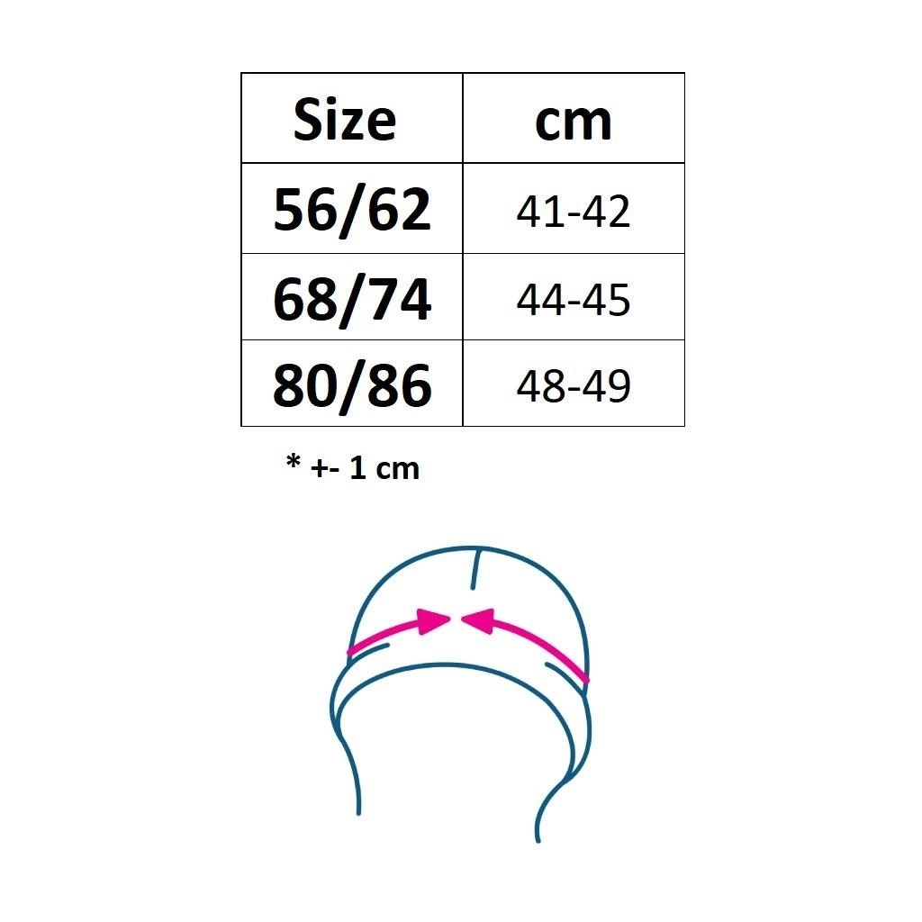 Ta czapeczka jest idealna dla niemowląt w rozmiarze 56/62 i łatwo dopasujesz ją do wiosennej lub letniej wyprawki.