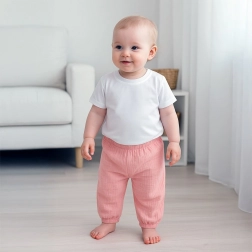Ten dziecięcy zestaw NEW BABY KINDERGARTEN w kolorze różowym to świetny wybór do codziennego noszenia. Łączy miękką bawełnianą koszulkę bez zapięcia z delikatną lamówką przy szyi oraz jednokolorowe spodnie muślinowe o nowoczesnym wyglądzie. Dzięki lekkim i przewiewnym materiałom dzieci będą czuły się komfortowo przez cały dzień.