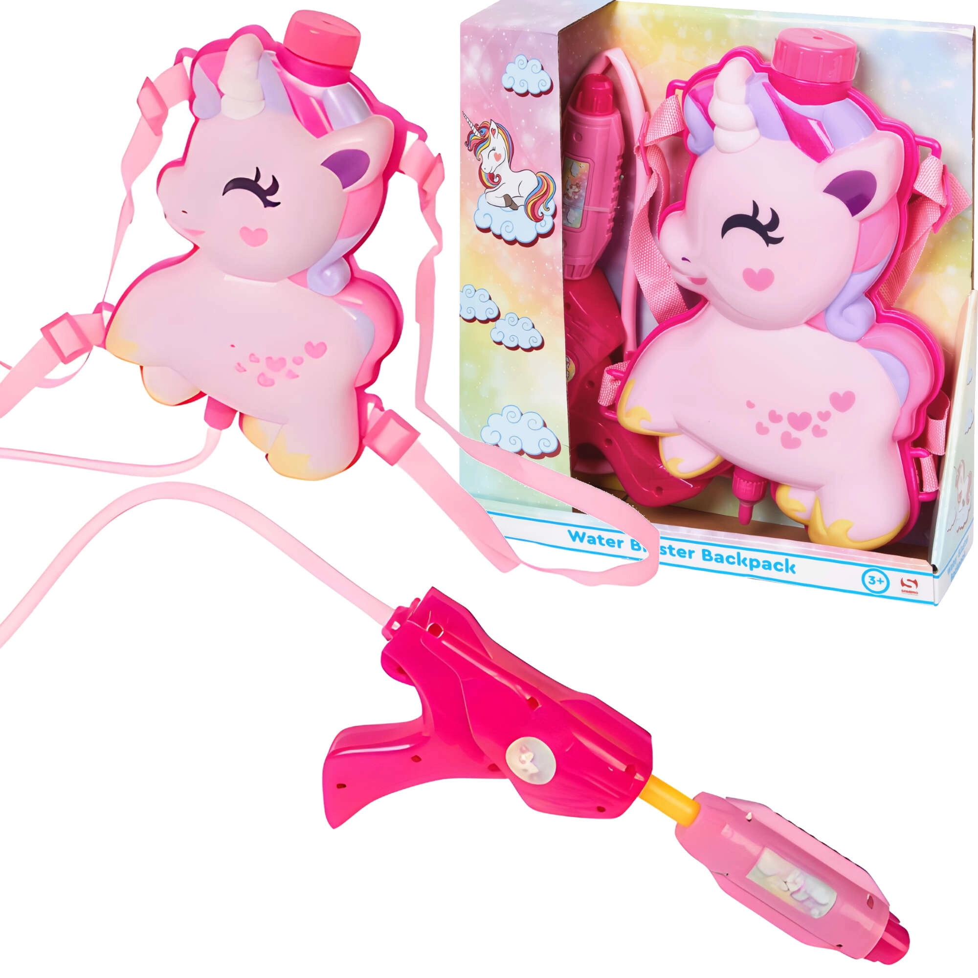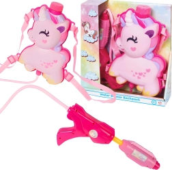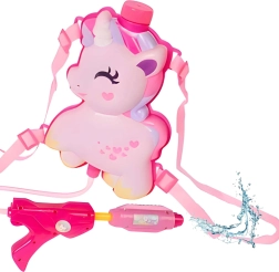 Ciesz się latem z uroczym zestawem – plecakiem w kształcie różowego jednorożca i ręcznym pistoletem na wodę z pompką. Dzięki regulowanym szelkom plecak wygodnie leży na plecach, zamykany otwór do napełniania ułatwia dolewanie wody, a mechanizm pompujący pozwala precyzyjnie skierować strumień. Świetna zabawa na świeżym powietrzu dla dzieci od 3 lat.