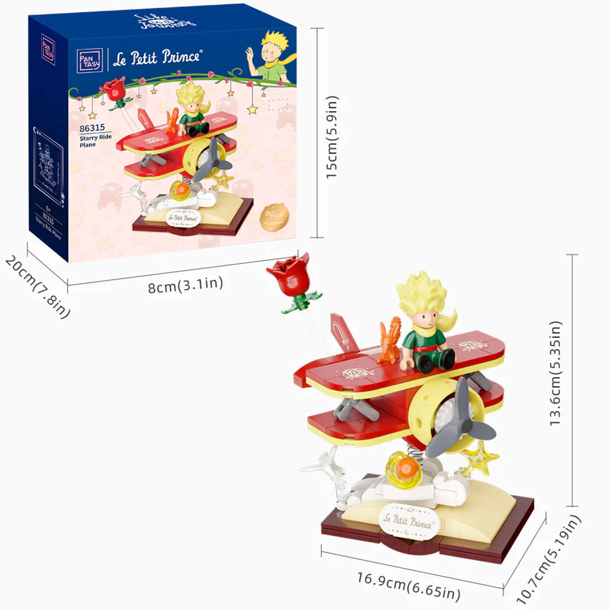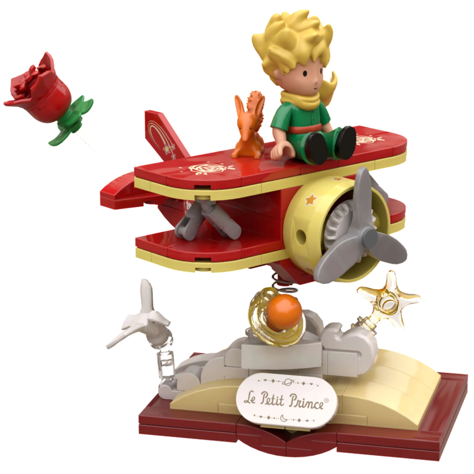 Wejdź do poetyckiego świata Małego Księcia i zbuduj elegancki dwupłatowiec z lisem i różą na scenicznej podstawie w formie otwartej książki. Dzięki precyzyjnemu wykonaniu i stabilnej konstrukcji model świetnie nadaje się do ekspozycji i subtelnych scenek zabaw. Drukowane motywy gwarantują długotrwale piękny wygląd bez odłupywania.