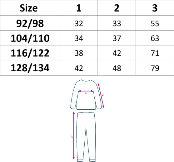 - Dziecięca dwuczęściowa piżama (bluzka z długim rękawem + spodnie)
