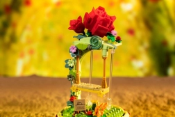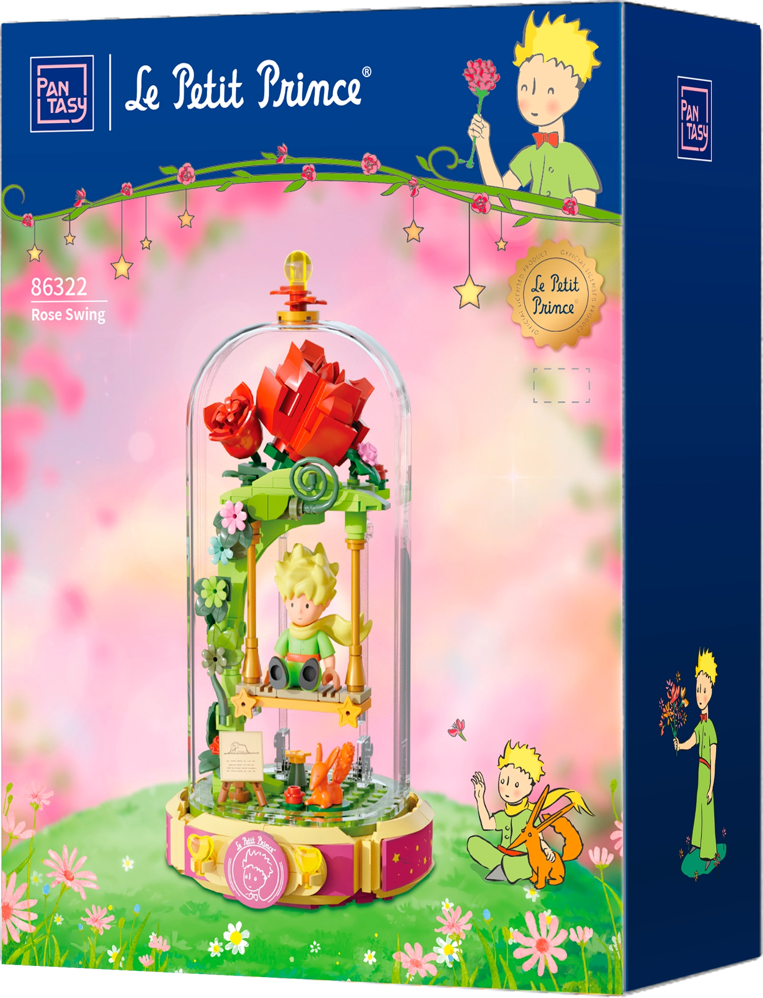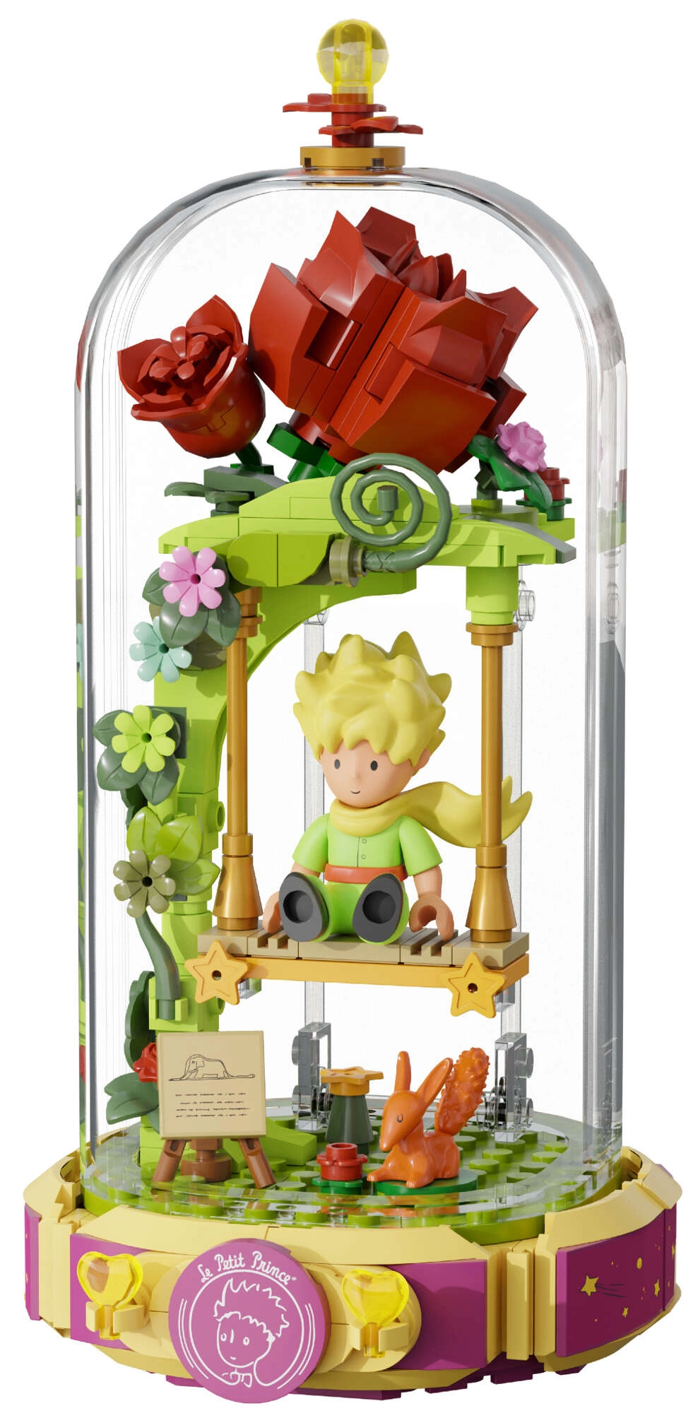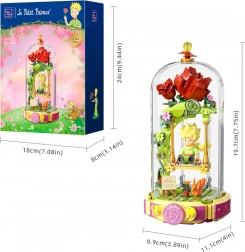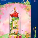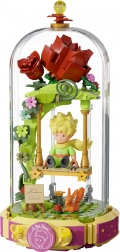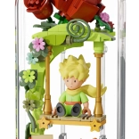 Ten designerski zestaw przenosi poetykę książki do delikatnej dioramy: Mały Książę siedzi na huśtawce pod różanym łukiem, otoczony kwiatami, listkami i gwiazdami. Scena jest chroniona przezroczystą osłoną, dzięki czemu doskonale prezentuje się na półce i biurku, pozostając bez kurzu.