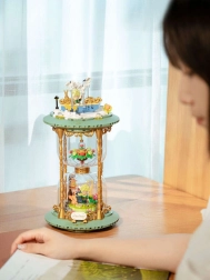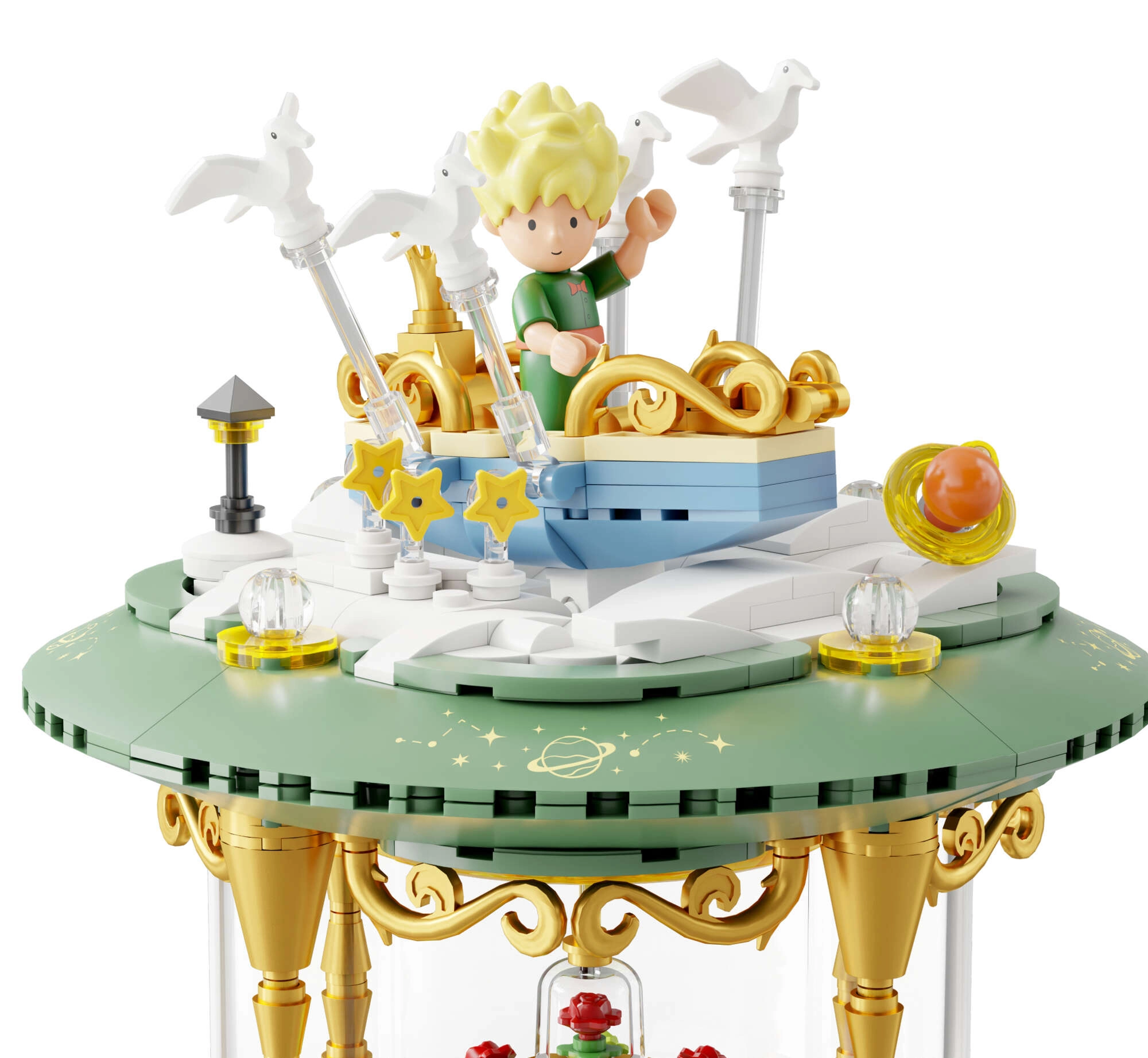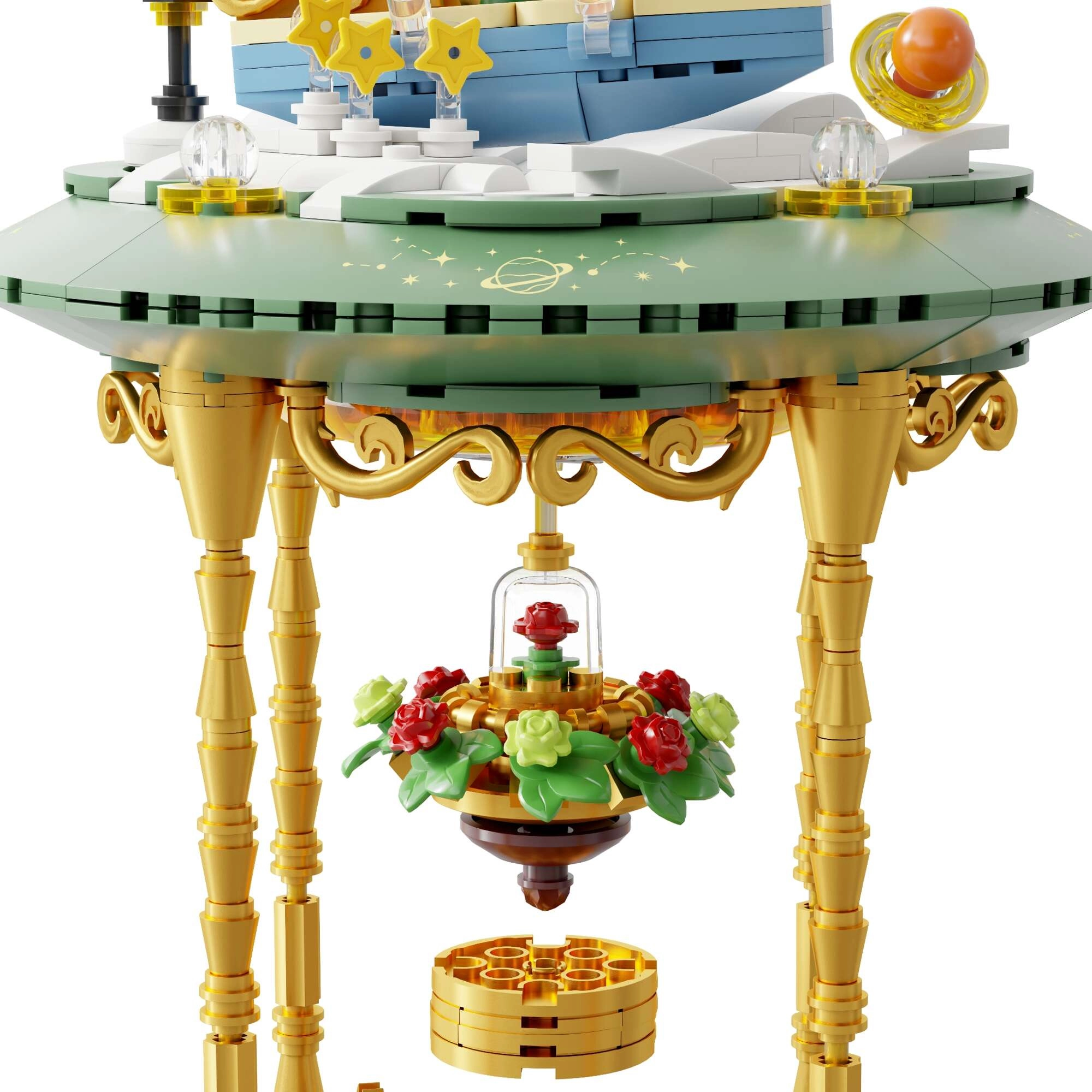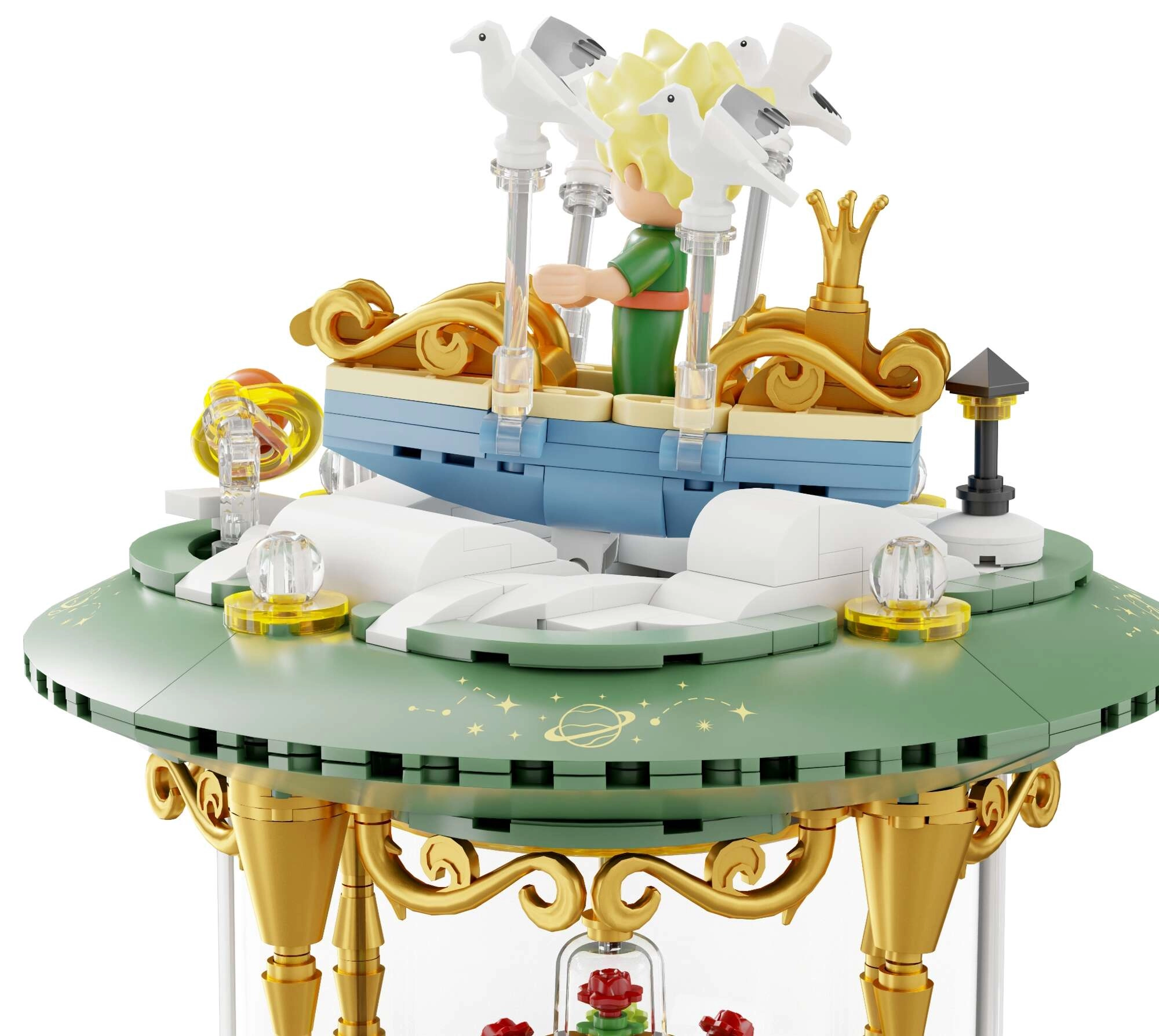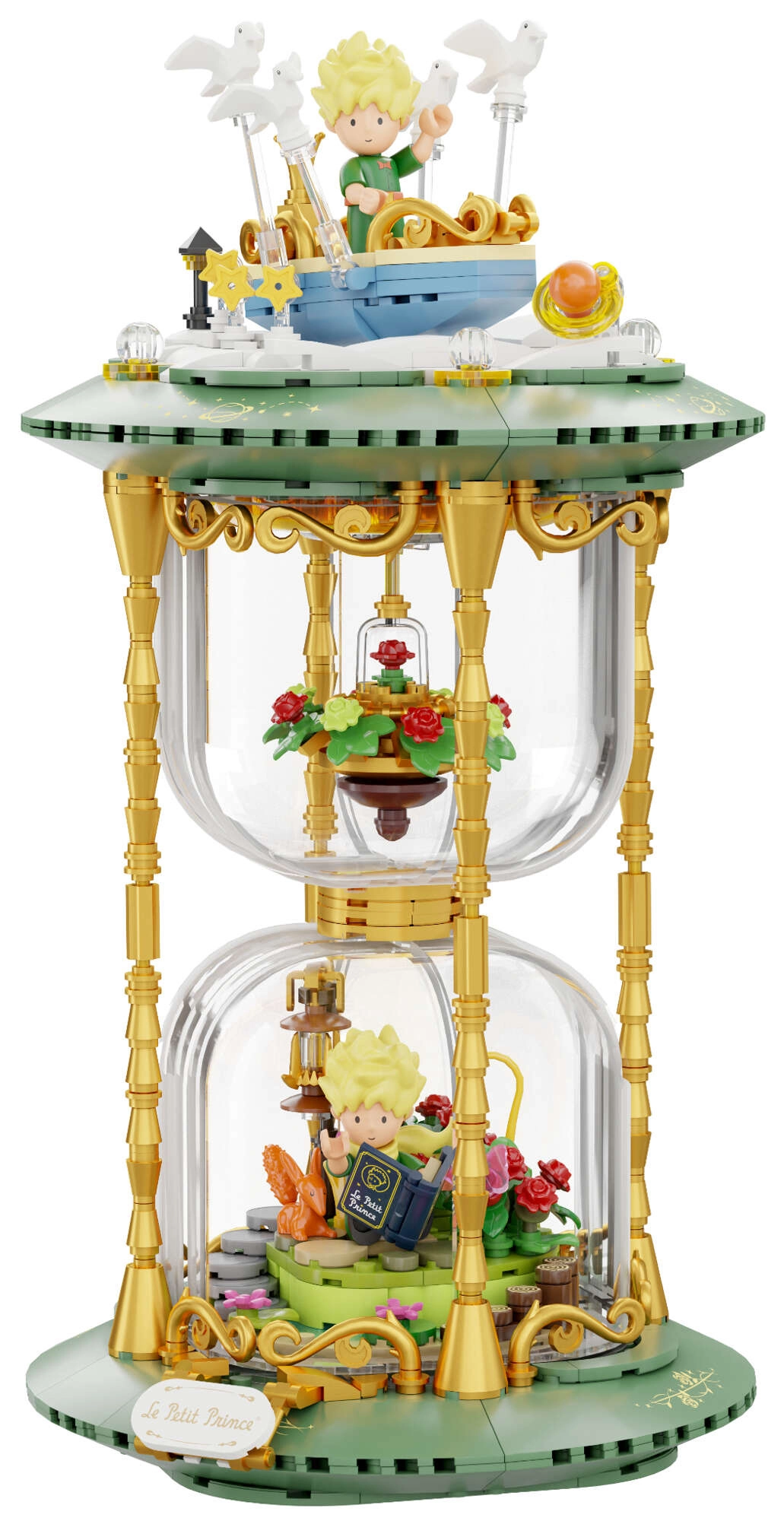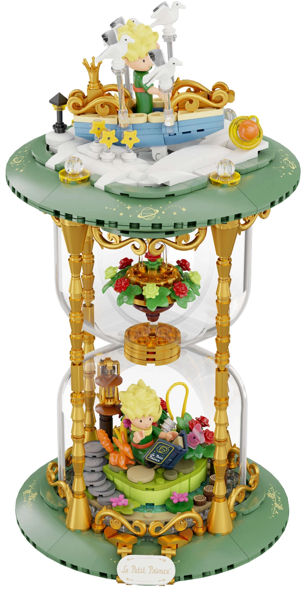 Ta efektowna konstrukcja w formie stylowej klepsydry łączy poetykę ponadczasowego dzieła z nowoczesnym designem. Zielone podstawy, złote kolumny i przezroczyste komory z mini scenami tworzą imponującą dioramę – Mały Książę, lis, róża pod szklanym kloszem oraz rozgwieżdżone niebo. Dzięki precyzyjnemu spasowaniu klocków i nadrukowanym wzorom model zachowa nienaganny wygląd przez długie lata.