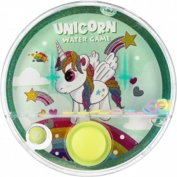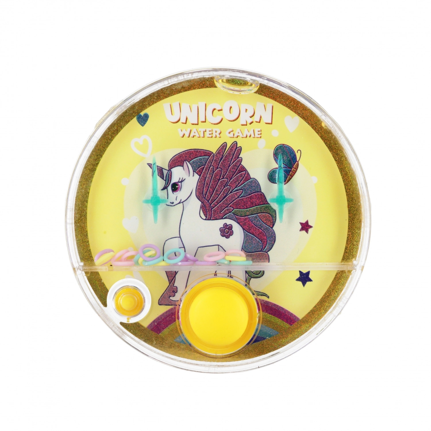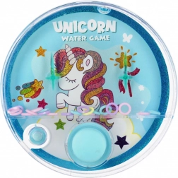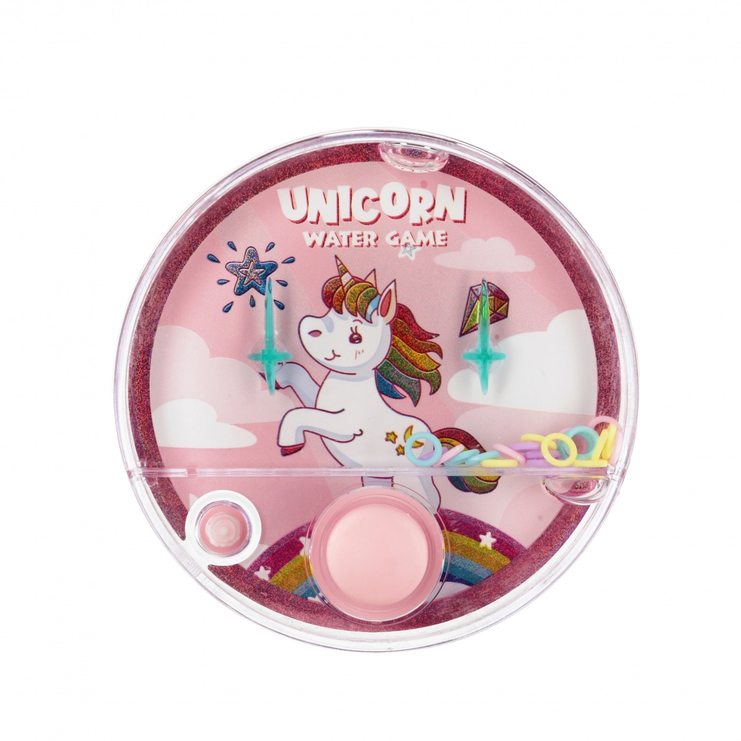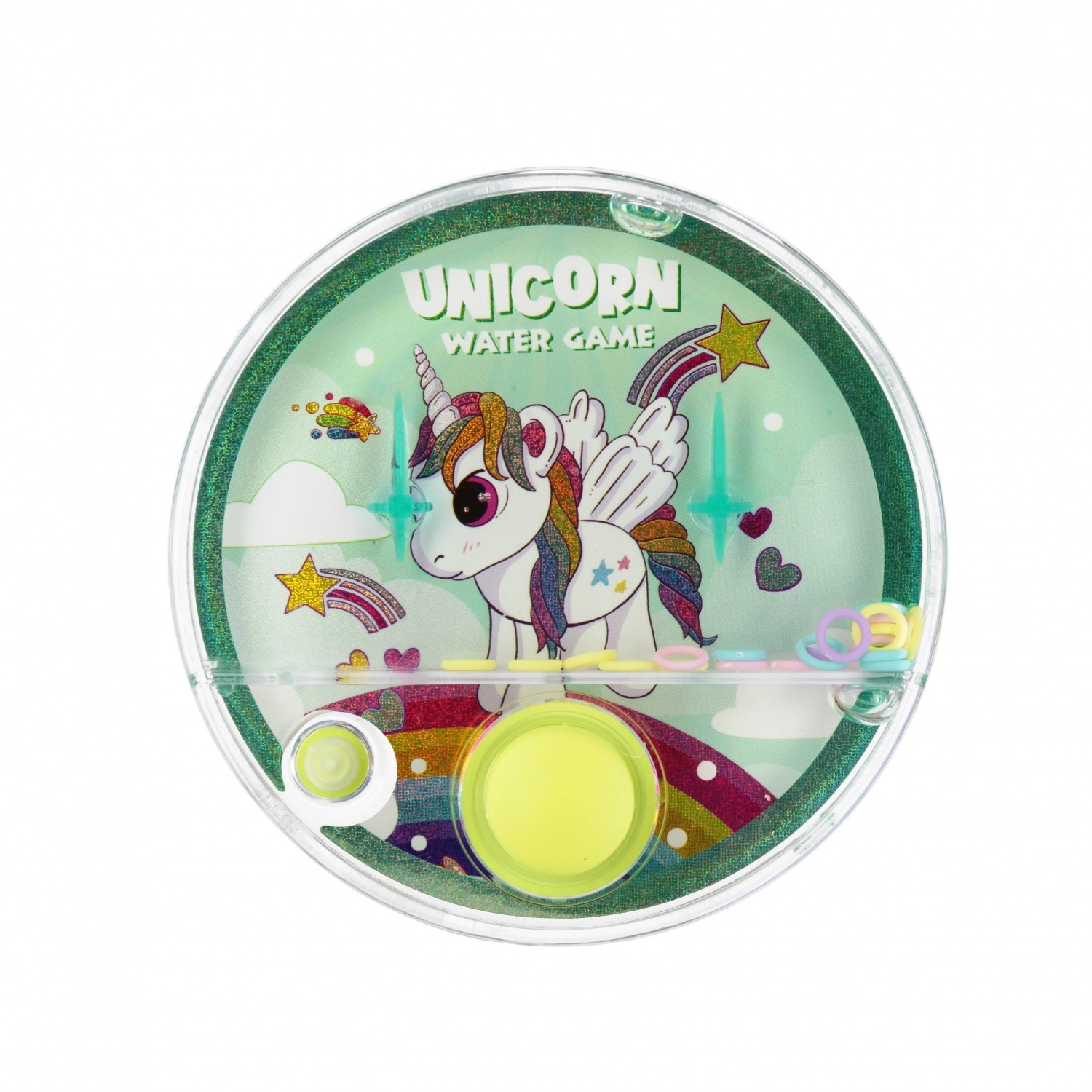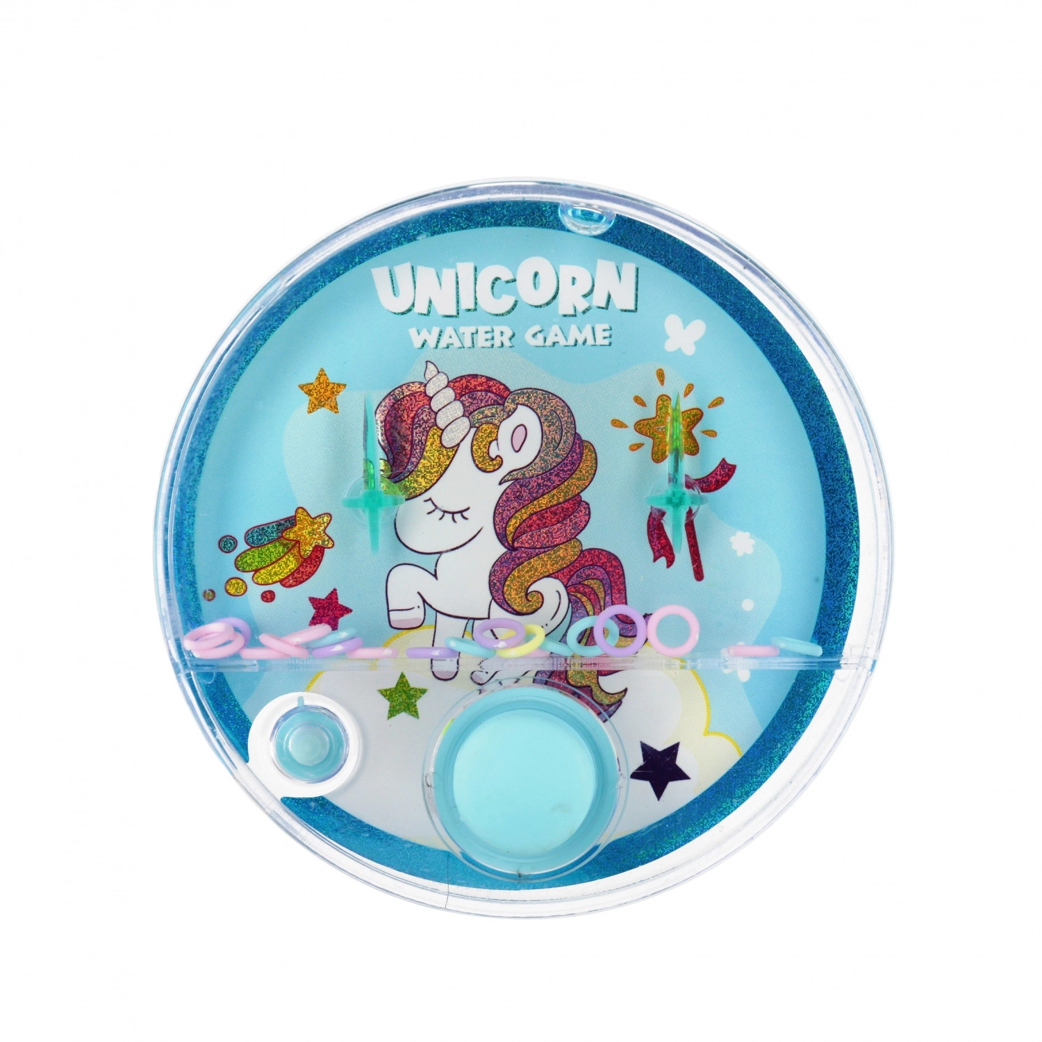 Zabawna kieszonkowa wodna gra z motywem jednorożca ucieszy każde dziecko. Kompaktowy rozmiar 10 cm jest idealny w podróży, do szkoły i na wakacje. Prostym naciśnięciem przycisków wprawiasz w ruch kółeczka w wodzie i starasz się umieścić je na kołeczkach – bezpieczna i wciągająca zabawa dla dzieci od 3 lat.