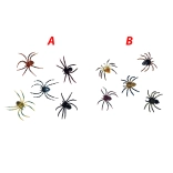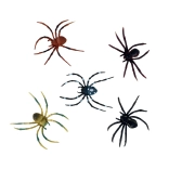 Zestaw zawiera pięć realistycznie wyglądających pająków w różnych kolorach, idealnych do dekoracji lub celów edukacyjnych.