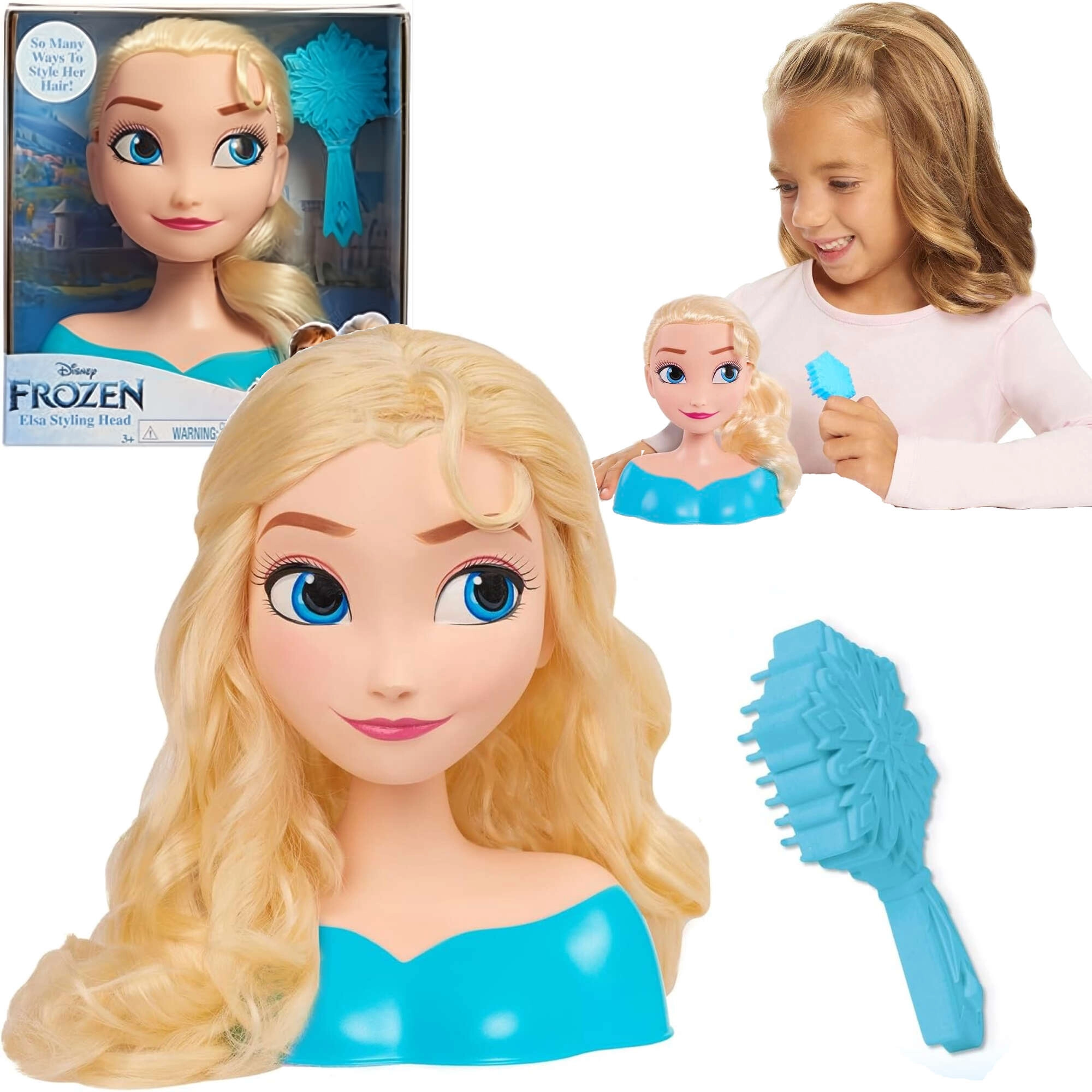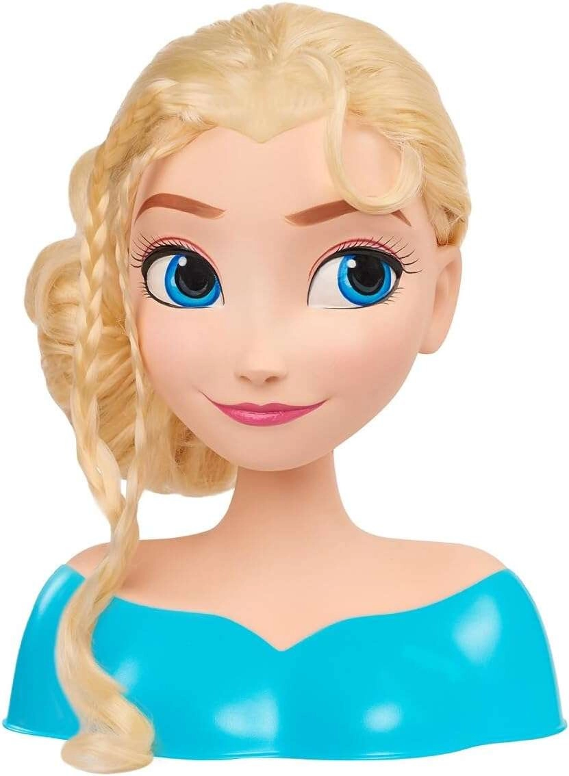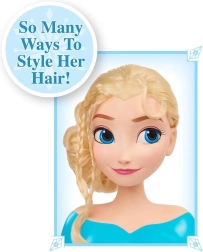 Głowa do czesania Elsa marki Just Play wiernie przedstawia ulubioną księżniczkę z filmu DISNEY FROZEN. Dzięki długim, gęstym i łatwym do rozczesywania włosom dzieci mogą tworzyć warkocze, fale i eleganckie koki. Solidna plastikowa podstawa stabilnie trzyma głowę na stole, więc czesanie jest wygodne i przyjemne.