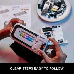 Dzięki przejrzystej instrukcji z kolorowymi ilustracjami budowa jest płynna i przyjemna. Gotowy model wyróżnia się jako stylowa dekoracja kącika biurowego i gamingowej nory. Wytrzymałe elementy ABS trzymają się mocno razem i minimalizują szczeliny, zapewniając czysty, elegancki wygląd.