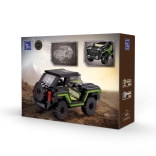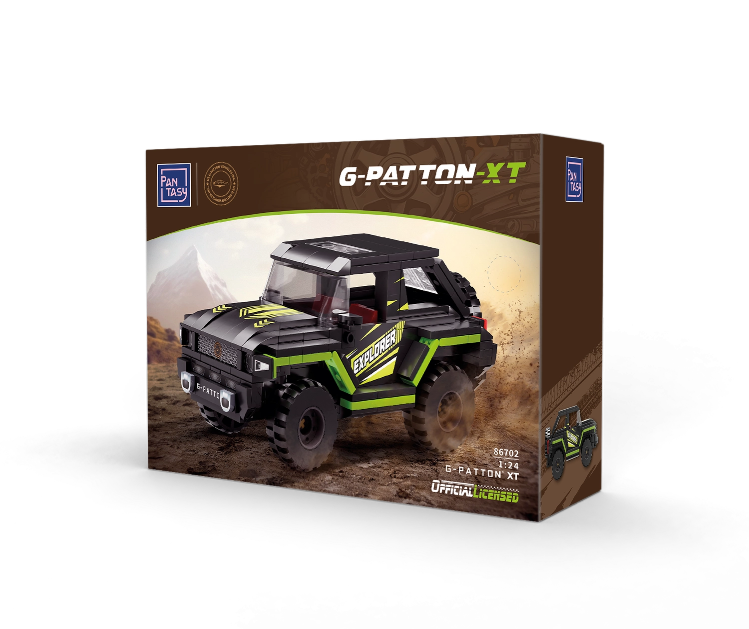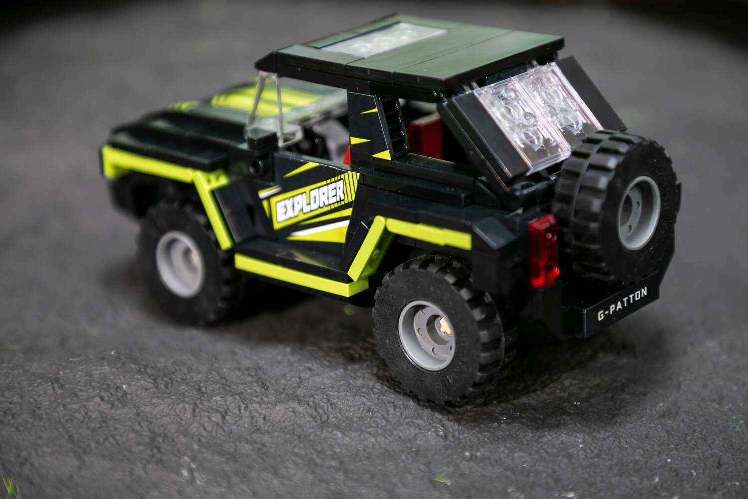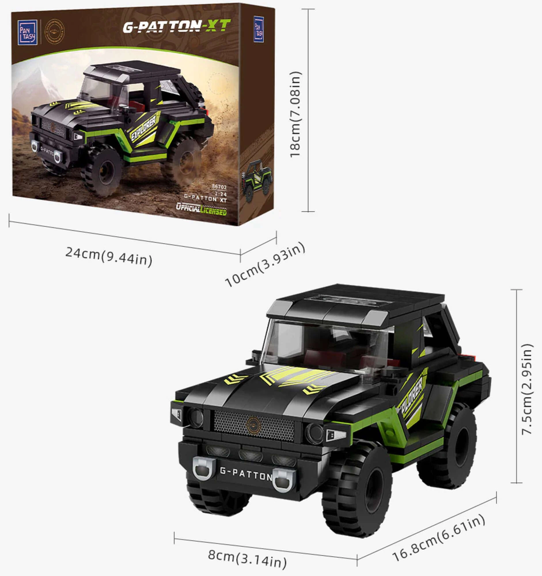 Ten stylowy model off-road w czarno–limonkowej kolorystyce zachwyca realistycznymi detalami: masywnymi oponami, przezroczystymi „oknami”, zapasowym kołem z tyłu oraz nadrukami EXPLORER/G–PATTON. Dzięki precyzyjnie dopasowanym elementom z tworzywa ABS budowa jest przyjemna, a efekt stabilny i wytrzymały.