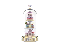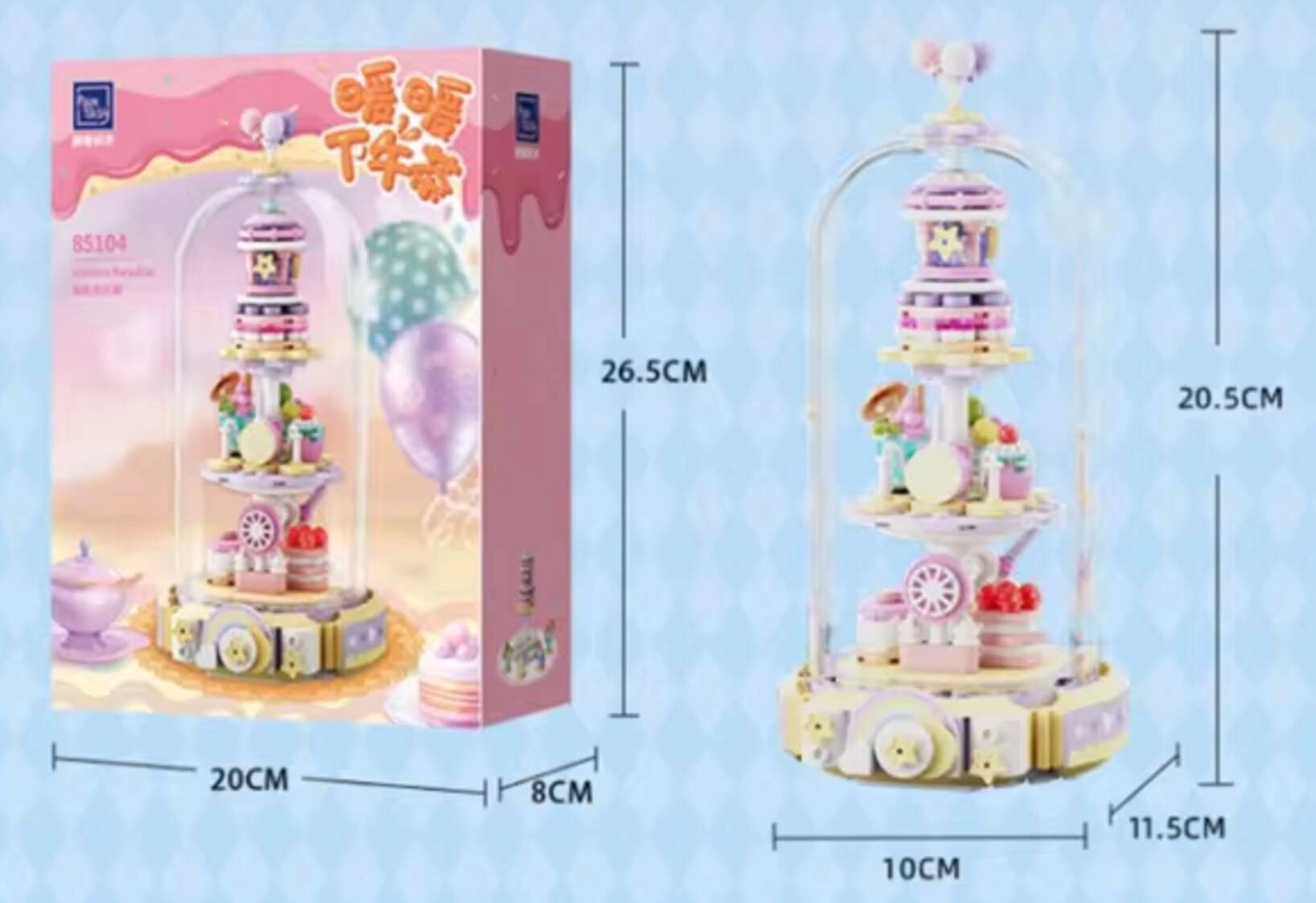 Wejdź do bajkowej atmosfery z trzypoziomową „cukiernią” pełną jednorożców, gwiazdeczek i serduszek. Przezroczysta kopuła nadaje modelowi elegancki wystawowy charakter i chroni drobne detale. Delikatne odcienie różu, błękitu i fioletu tworzą urzekającą dekorację do dziecięcego pokoju i na półkę kolekcjonera.