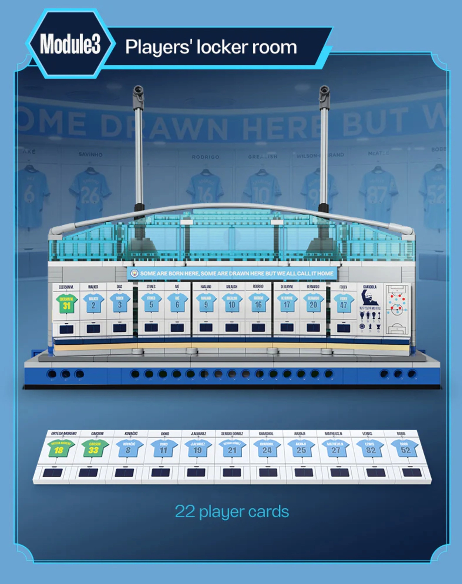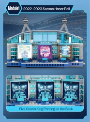 Modułowe rozwiązanie pozwala osobno złożyć szatnię i hall of fame, dzięki czemu model cieszy zarówno podczas budowy, jak i oglądania oraz ekspozycji. Dzięki dołączonemu oświetleniu LED (USB) wyeksponujesz kluczowe linie stadionu, a model stanie się wyrazistą dekoracją każdej kolekcji.