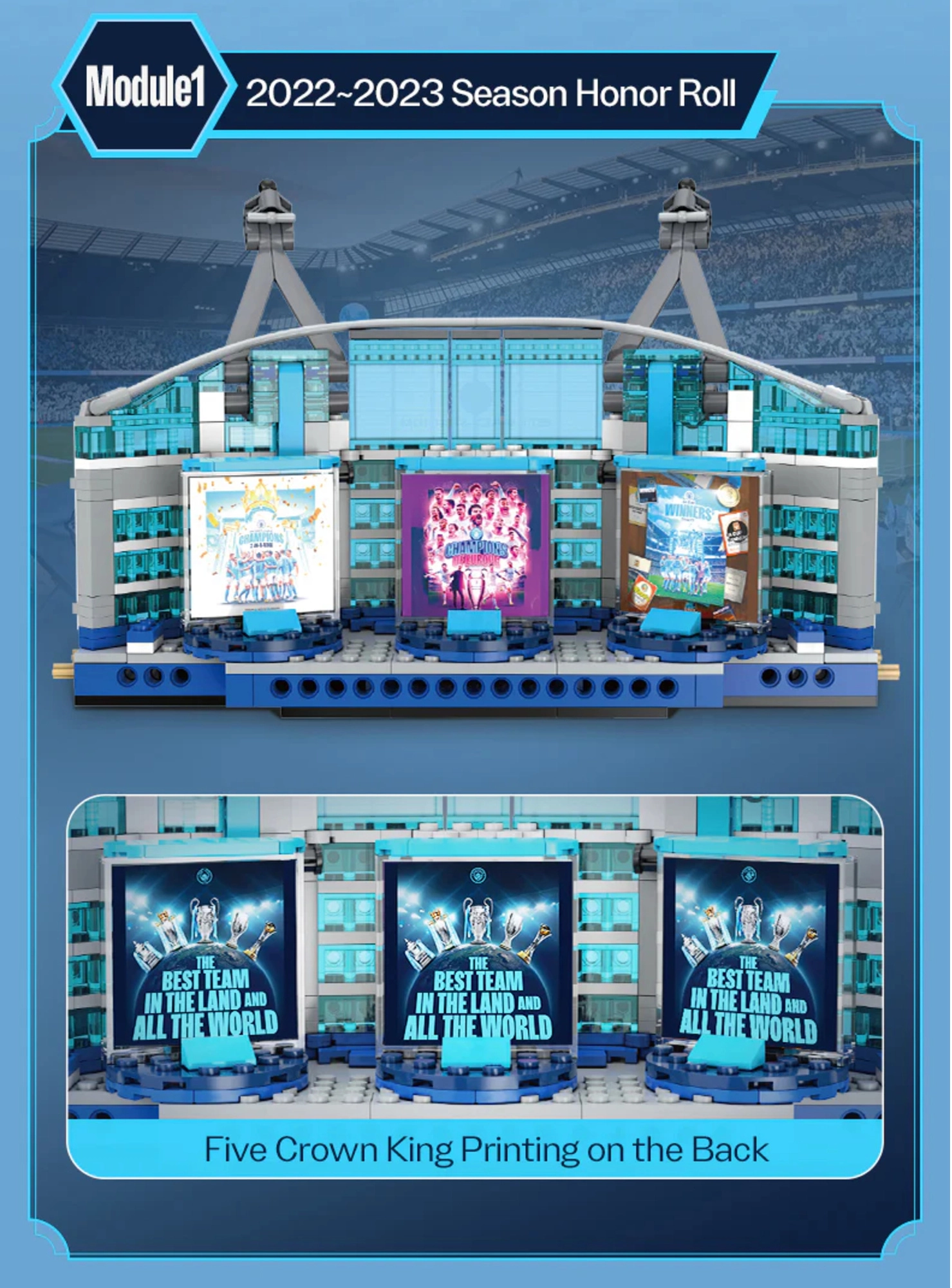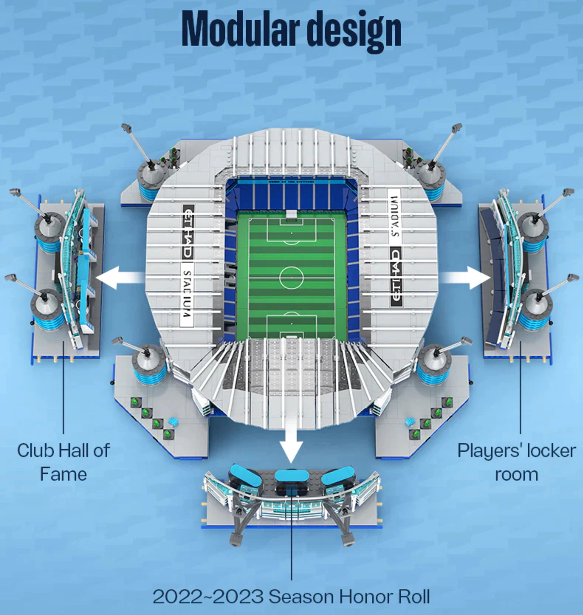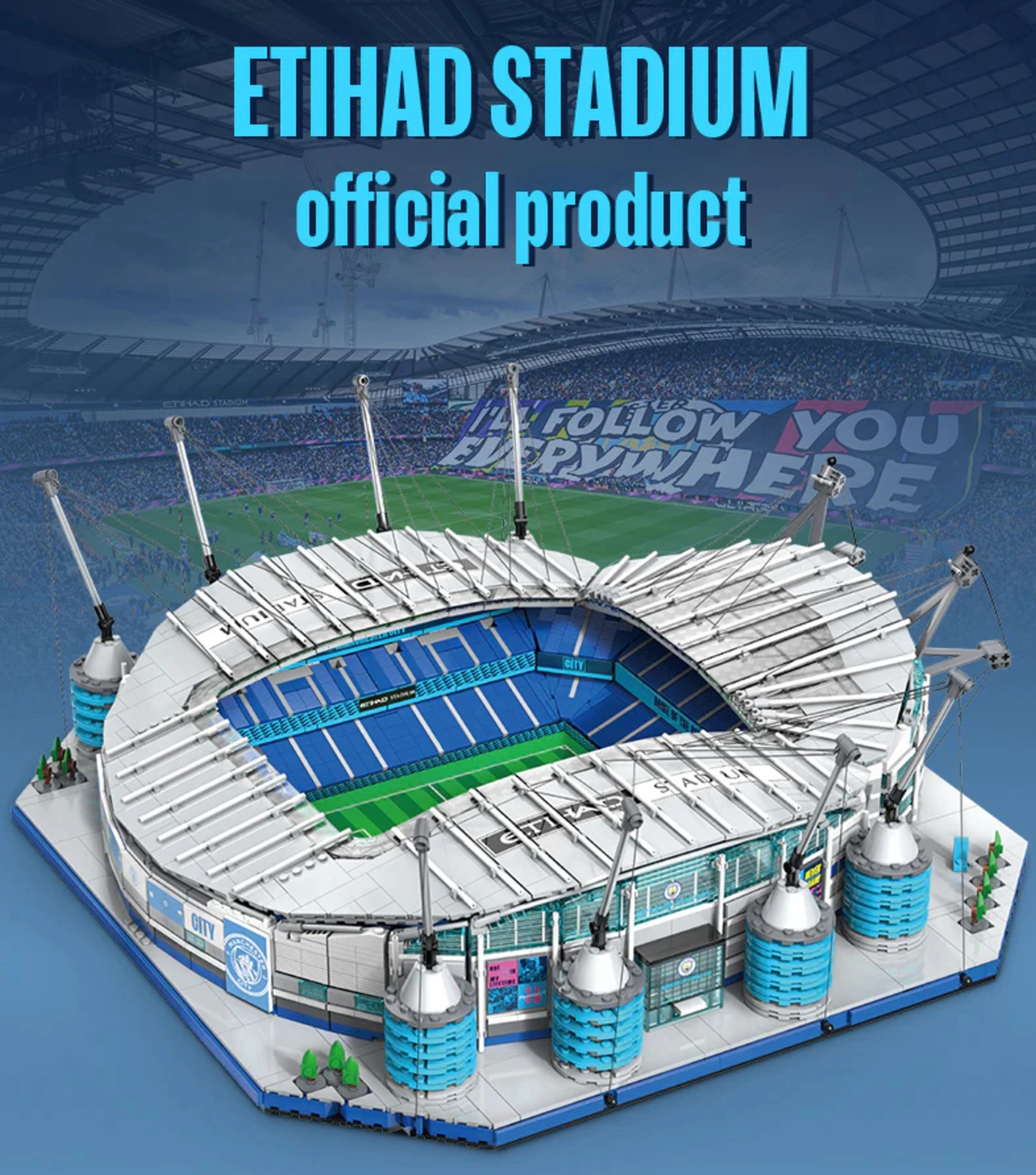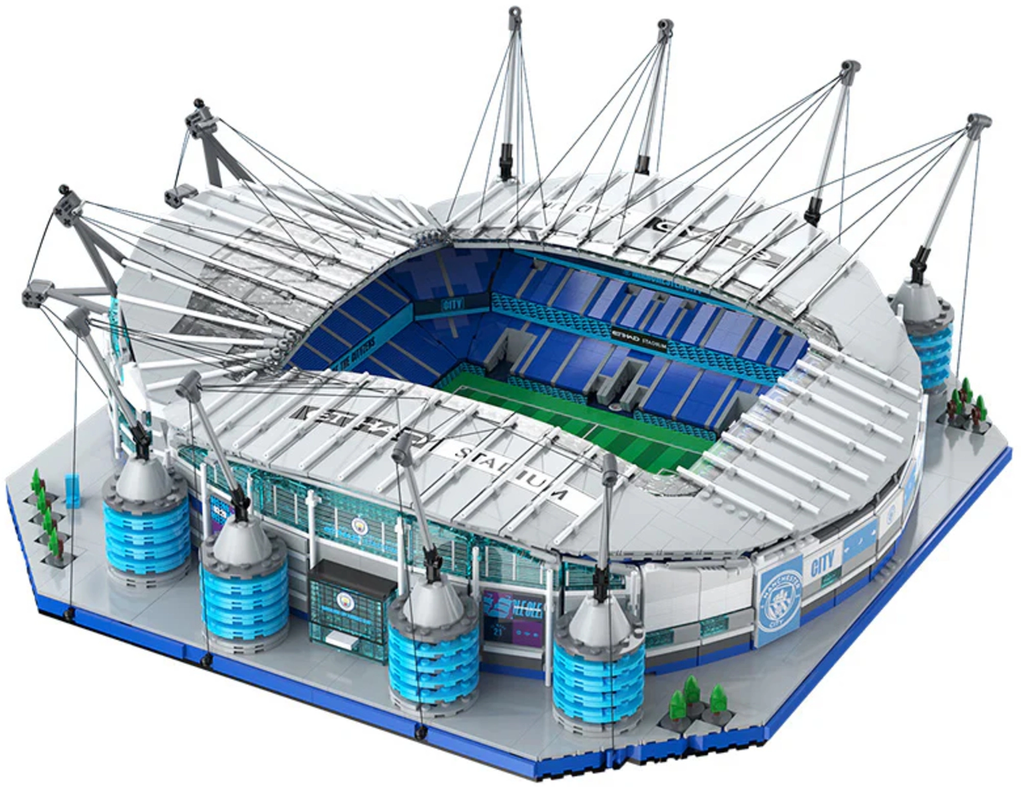 Gwarancja autentycznych detali stadionu Etihad – dokładne proporcje, trybuny, bramki i charakterystyczne pylony z systemem linowym.