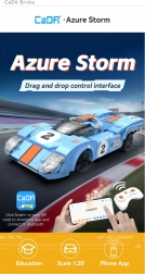 Zestaw CaDA AZURE STORM łączy kreatywne budowanie z szybką jazdą RC. Po złożeniu otrzymasz szczegółowy samochód wyścigowy o aerodynamicznym kształcie, przezroczystym kokpicie i sportowych naklejkach, gotowy do akcji w domu i na zewnątrz. Sterowanie jest intuicyjne i stabilne dzięki technologii 2,4 GHz i Bluetooth.