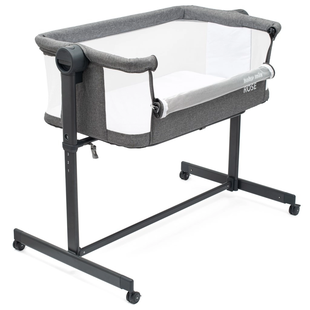 Dostawne łóżeczko Rose od Baby Mix to idealne rozwiązanie na spokojne, wspólne noce. Dzięki pięciostopniowej regulacji wysokości (68–80 cm) łatwo dopasujesz je do wysokości łóżka małżeńskiego, a siatkowe boki zapewnią stały podgląd dziecka i doskonały przepływ powietrza. Zamki są umieszczone po zewnętrznej stronie dla wygodnego i bezpiecznego dostępu.