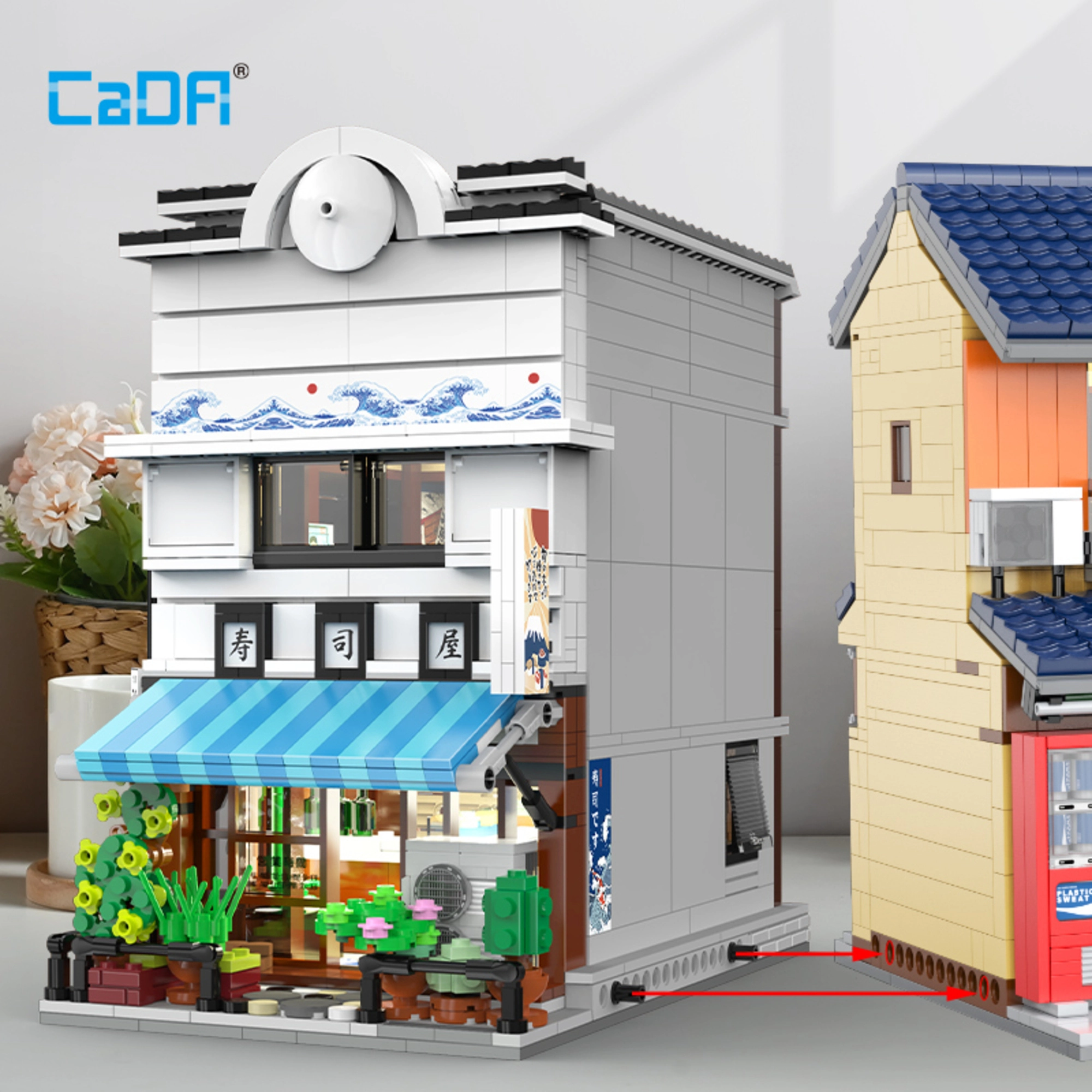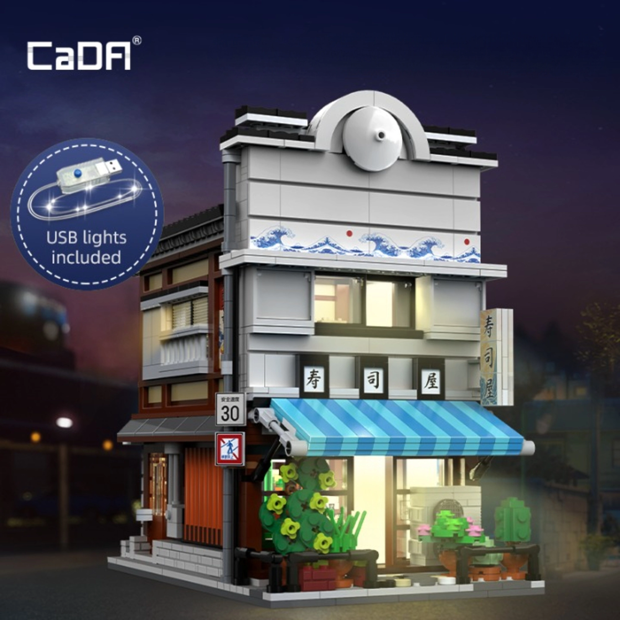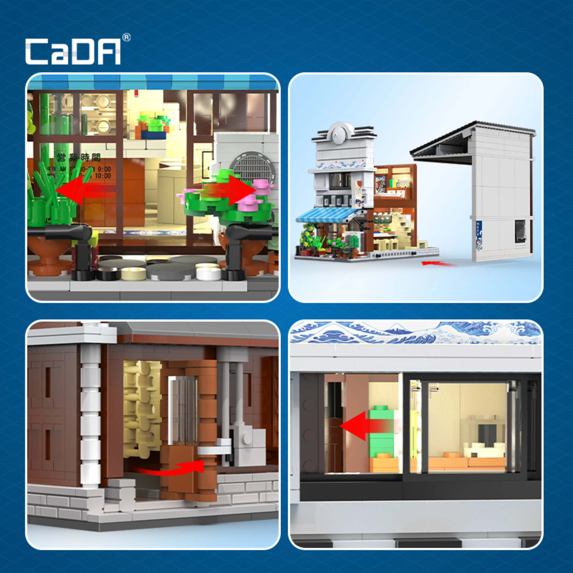 Ten designerski zestaw przedstawia autentyczny japoński, dwupiętrowy sklep z sushi z naciskiem na detale wnętrza i elewacji. Otwierana konstrukcja pozwala łatwo zajrzeć do środka – znajdziesz tu hokery barowe, dekoracyjny bambus, schody oraz przytulny pokój na piętrze z łóżkiem, telewizorem i komodą.